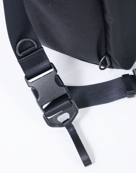 When worn over the shoulder, the three-point strap system allows the bag to be securely fixed to the body, making it especially convenient for activities such as cycling.