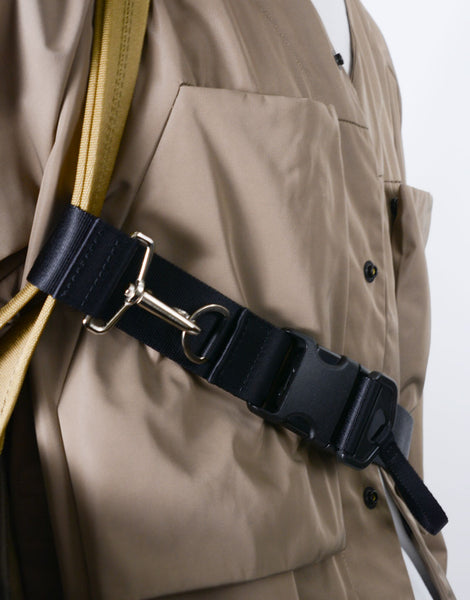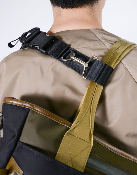 The shoulder strap can be used as a three-point fastening strap when over the shoulder by changing the connection method.