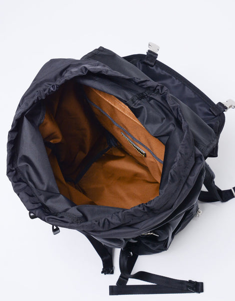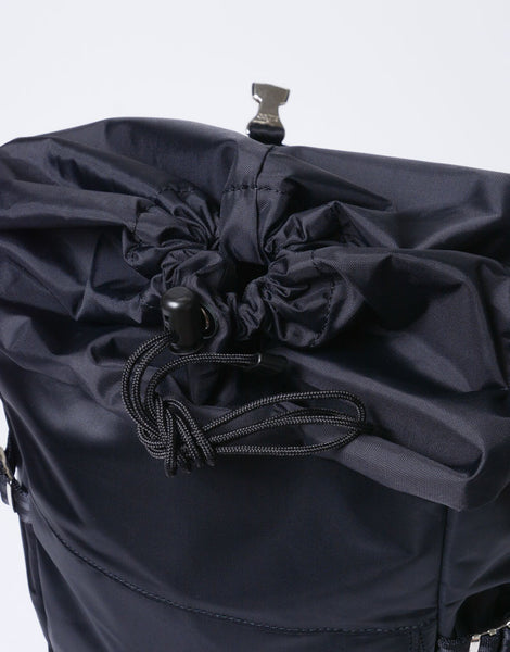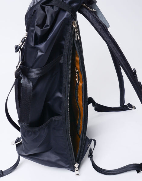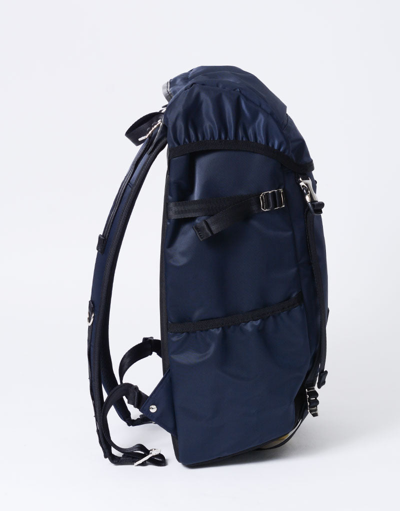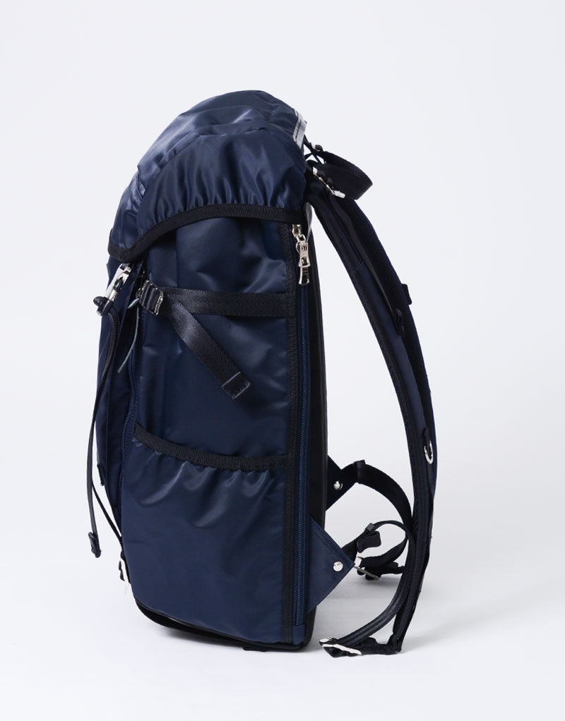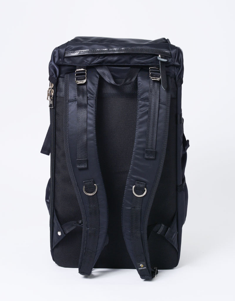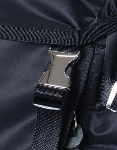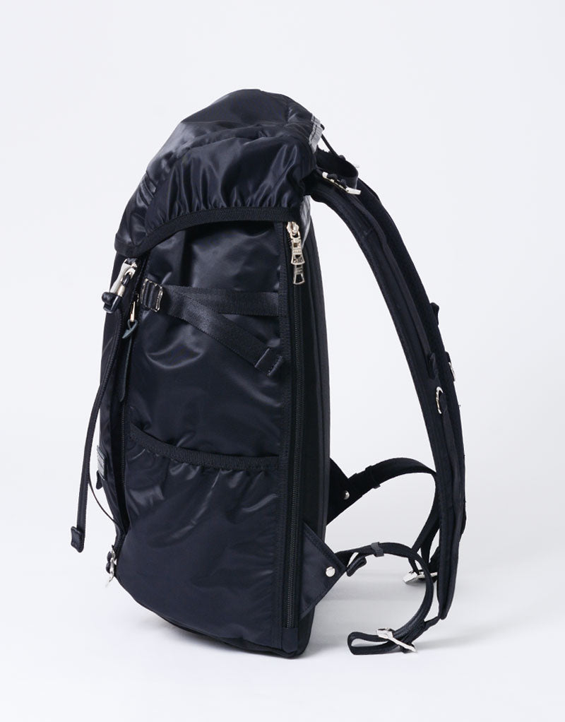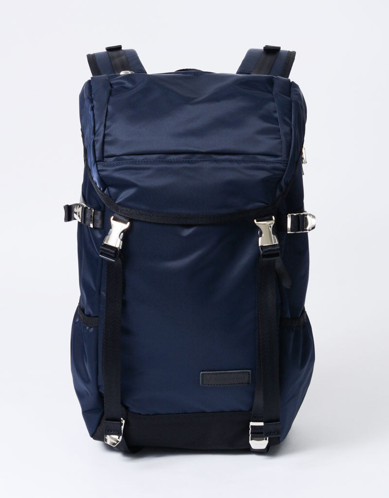 This series is characterized by its elegant sheen from the ultra high-density nylon twill, combined with military-inspired details highlighted by metal parts.
