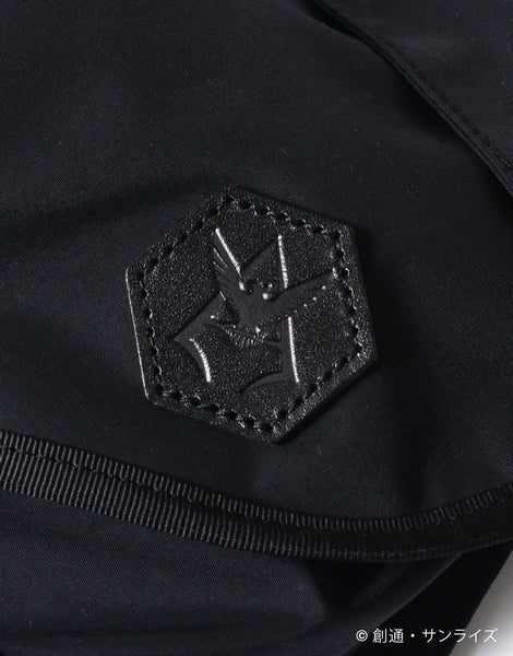 Featuring red accents symbolic of Char’s custom mobile suit, a leather name tag embossed with his personal emblem, and a tape loop that can be used as a towel holder, this collaboration incorporates exclusive special details throughout the design.