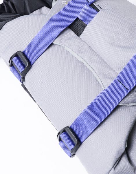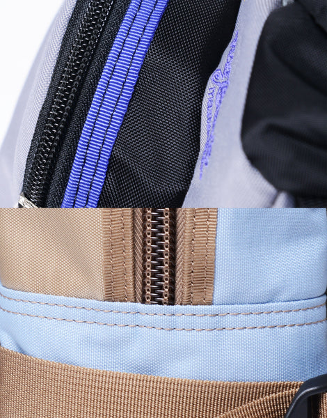 The GRAY x BLACK x PURPLE and SAX x BEIGE coloring are designed with vintage outdoor backpack color schemes, with a unique color scheme that is designed for spring and summer, and can be used as an accent to your outfit.