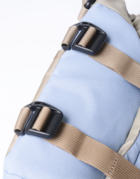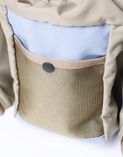 The GRAY x BLACK x PURPLE and SAX x BEIGE coloring are designed with vintage outdoor backpack color schemes, with a unique color scheme that is designed for spring and summer, and can be used as an accent to your outfit.