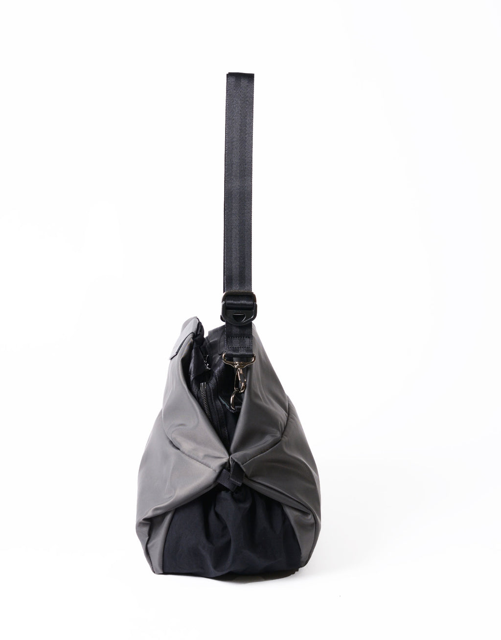This 2-way design can be used as a shoulder bag or as a handbag by removing the shoulder strap, featuring a simple design with a rounded silhouette that changes depending on how it's carried.