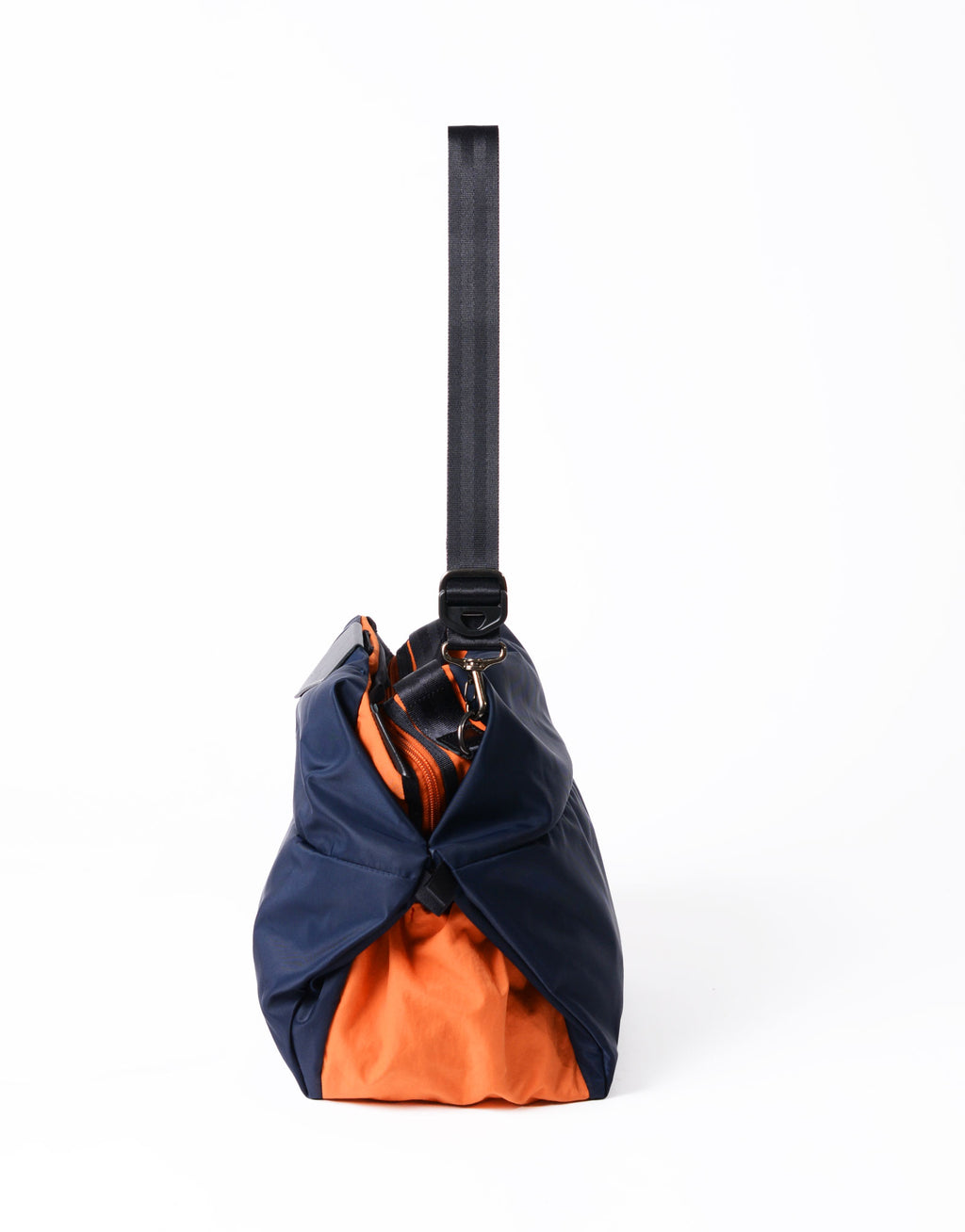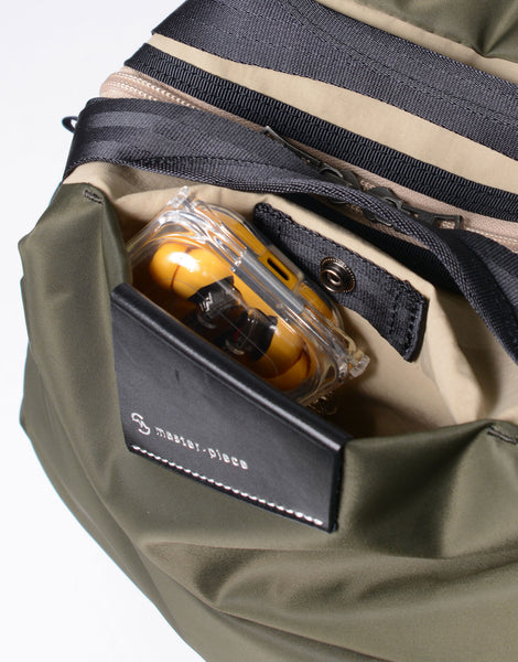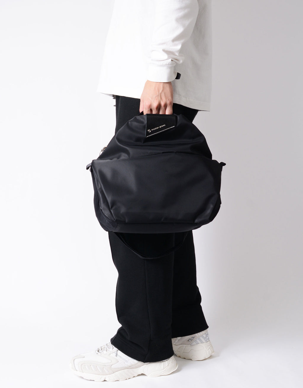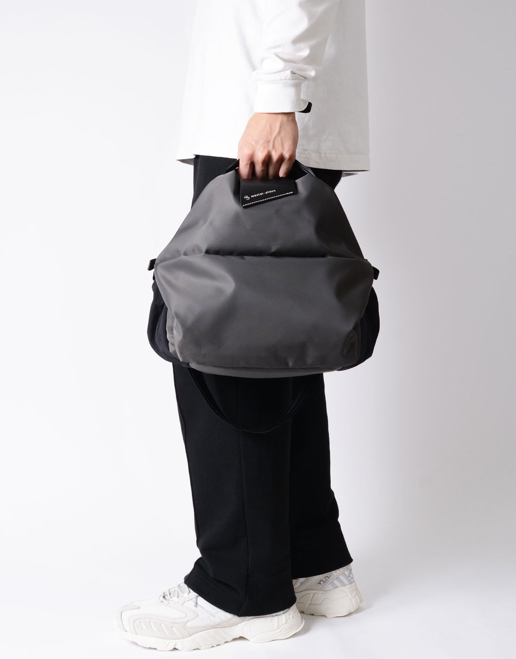 The main body material uses Toray's ECOUSE®, a recycled material made from factory waste, woven with 70d warp and 210d weft semi-dull yarn to create recycled nylon twill.
