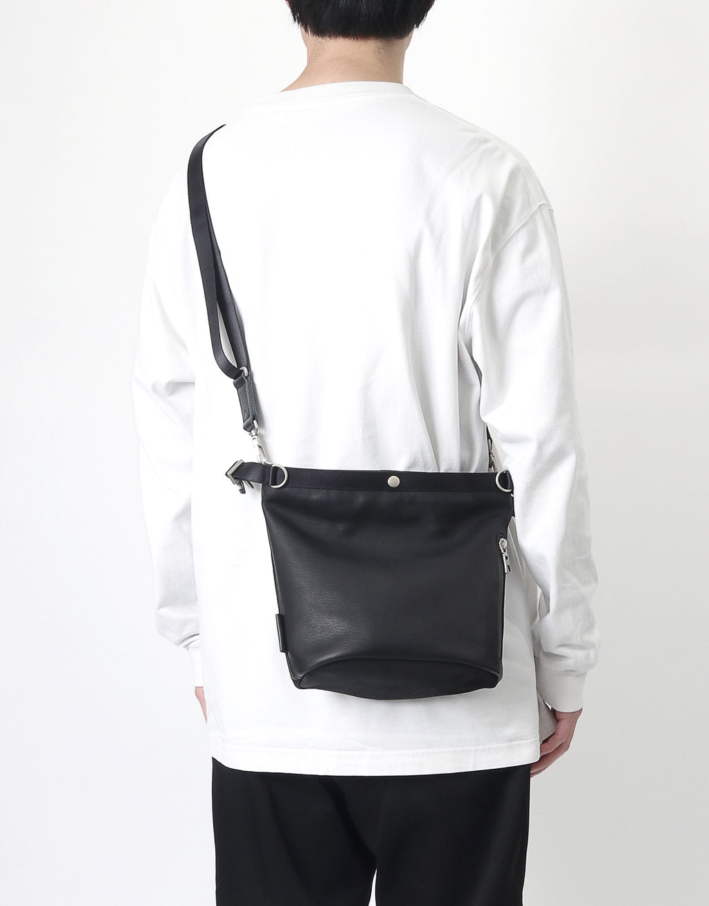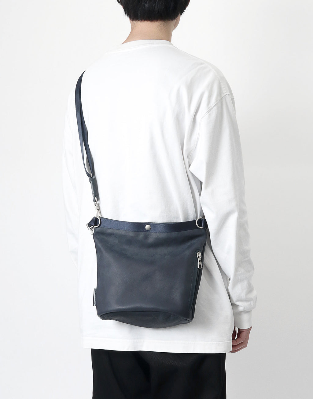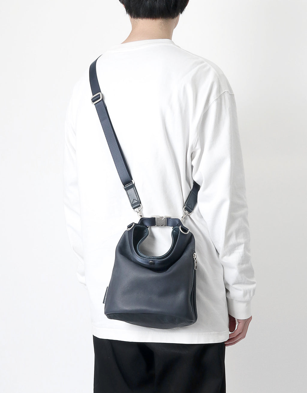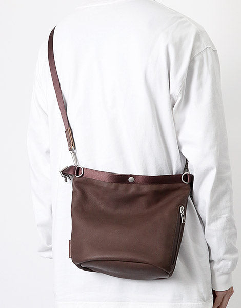 A leather bag series with a unisex design that combines waterproof, functional yet soft leather with glossy nylon tape.