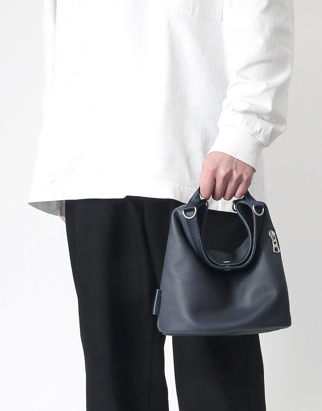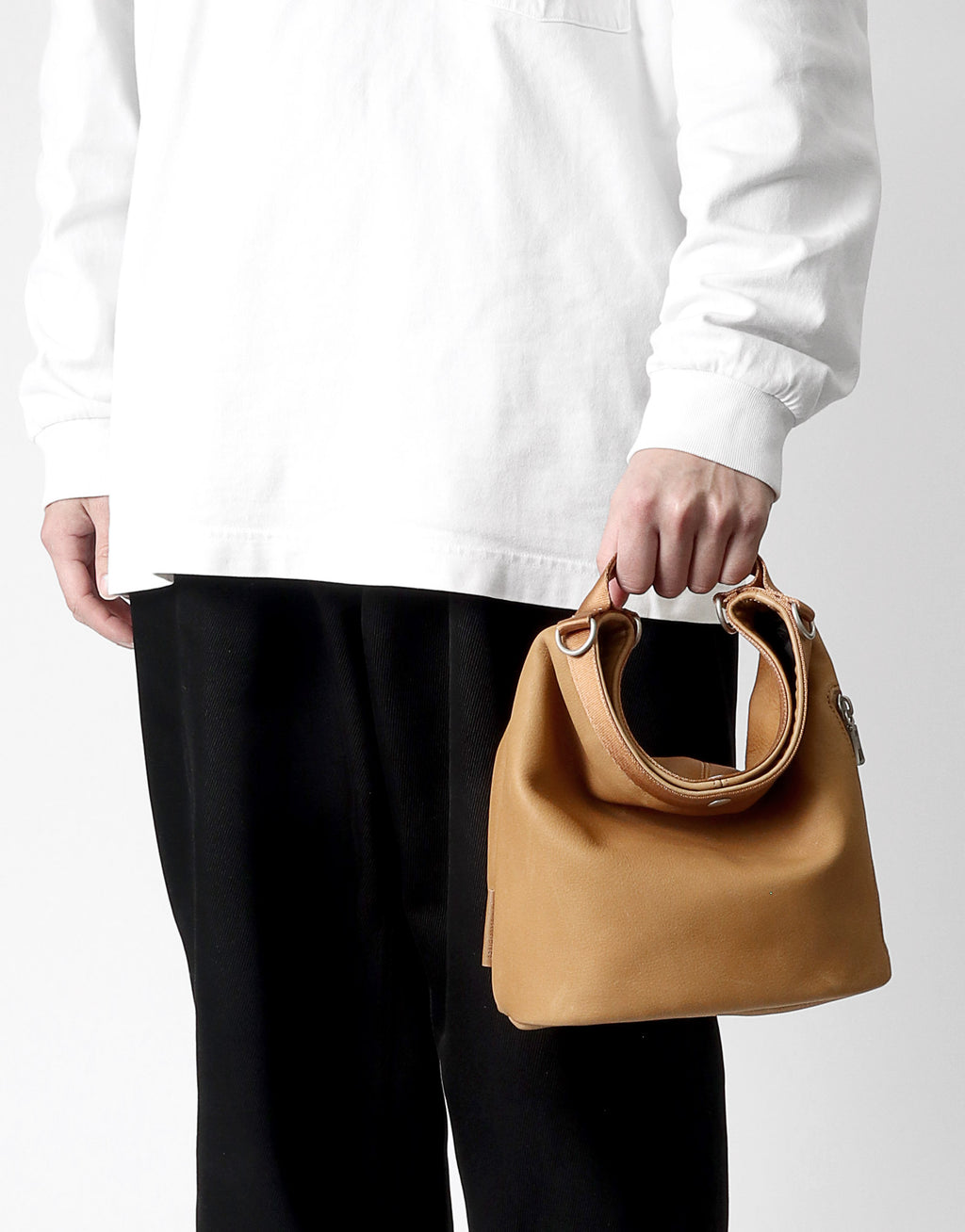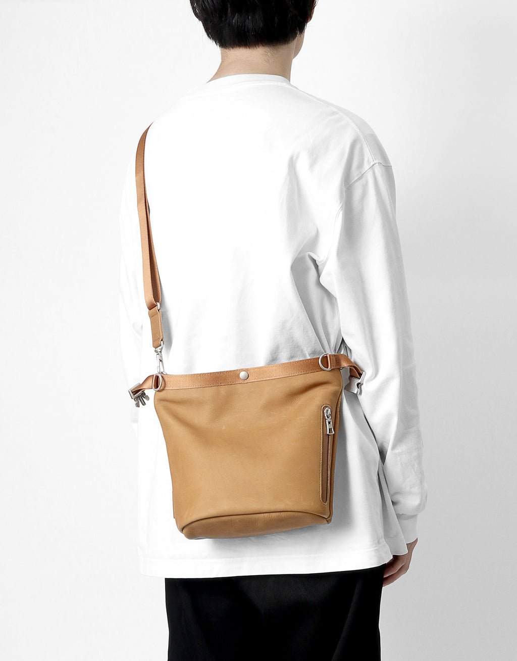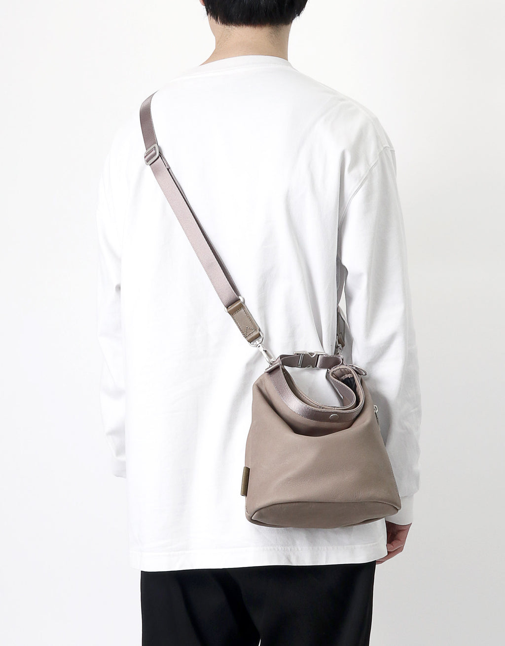 A leather bag series with a unisex design that combines waterproof, functional yet soft leather with glossy nylon tape.