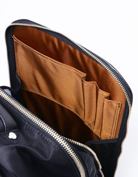 The leather of the body is made of high -quality sterrow leather from North America, putting a waterproofing agent made by "3M" in a tie when dyeing, and penetrating into the leather fiber. Water and oil will be sustained from the back of the leather, as well as the wounded places. It is a waterproof, oilproof and antifouling leather that passed the monitoring test of the 3M company "ScotchGard®". The test is done even if the surface is cut, so it does not work. In addition, two types of smooth and embossed processing are processed on the WAY, and the smoothness is semi -anilin, but the finish is more sophisticated and elegant for the finish, and the embossing is more elegant. It will be difficult. Oil and tannins are selected so that they can be used as lighter as possible. The attached fabric uses 100d CORDURA® semidal threads for Invista's CORDURA®brand Fabric standards, and finishes a high -density -woven twill using 420dCordura® Bright thread for the light thread. MasterteX-06 is an original fabric with a 3-layer structure that lminate L-vent® laminated and tracot nylon is pasted. It is a business series that is equipped with various compartments that meet modern needs and pursues functionality.
