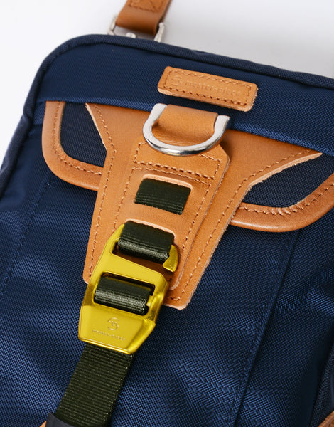 シリーズのデザインポイントであるバックルとDカン。バックルは別売のフックバックルを購入いただくことでカラーカスタマイズが可能。