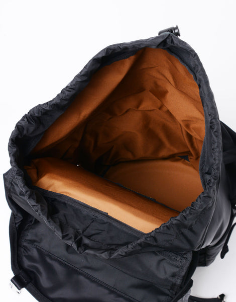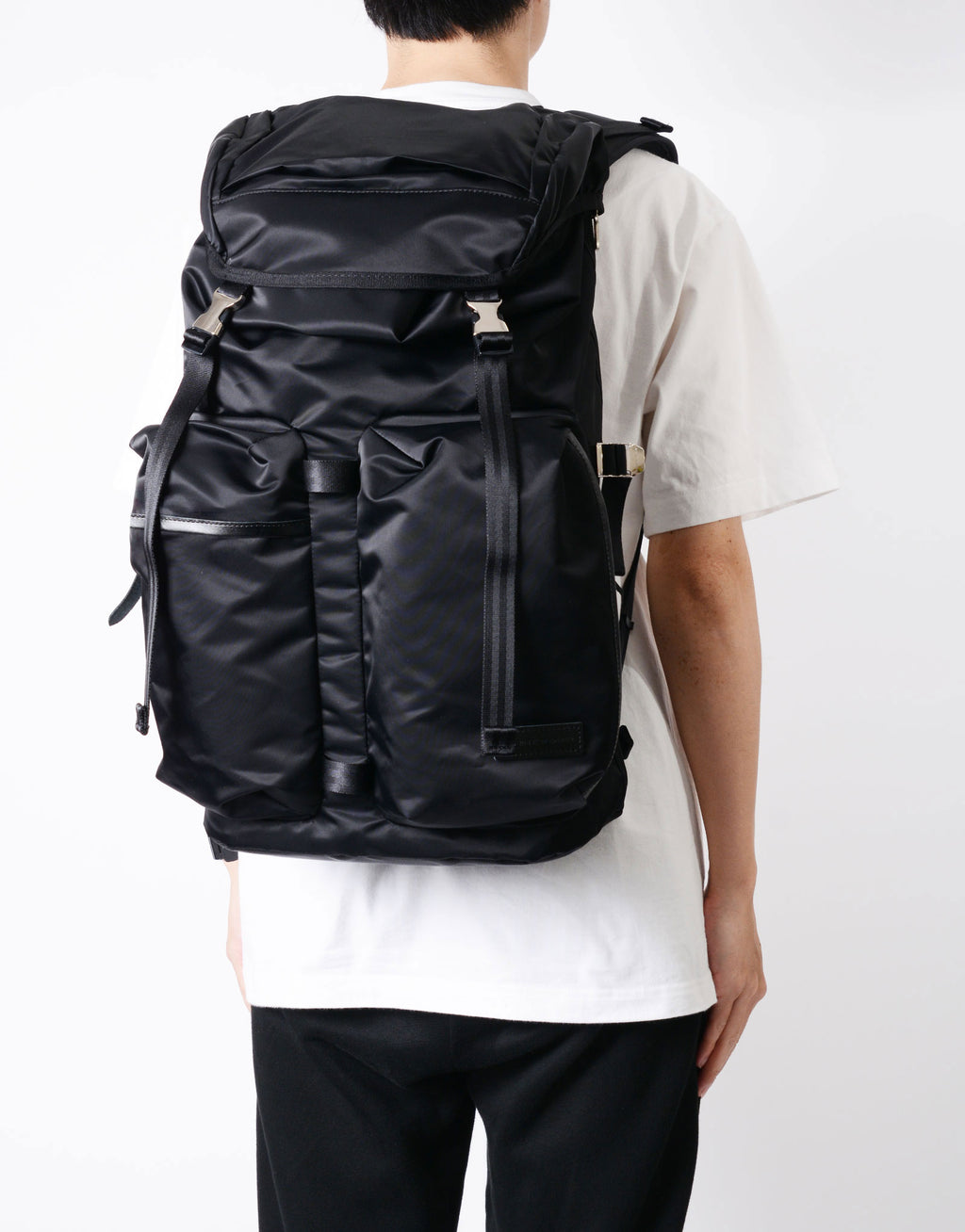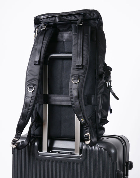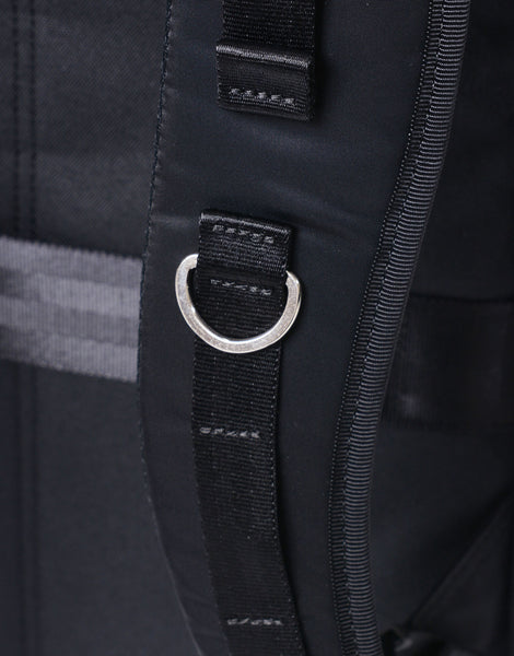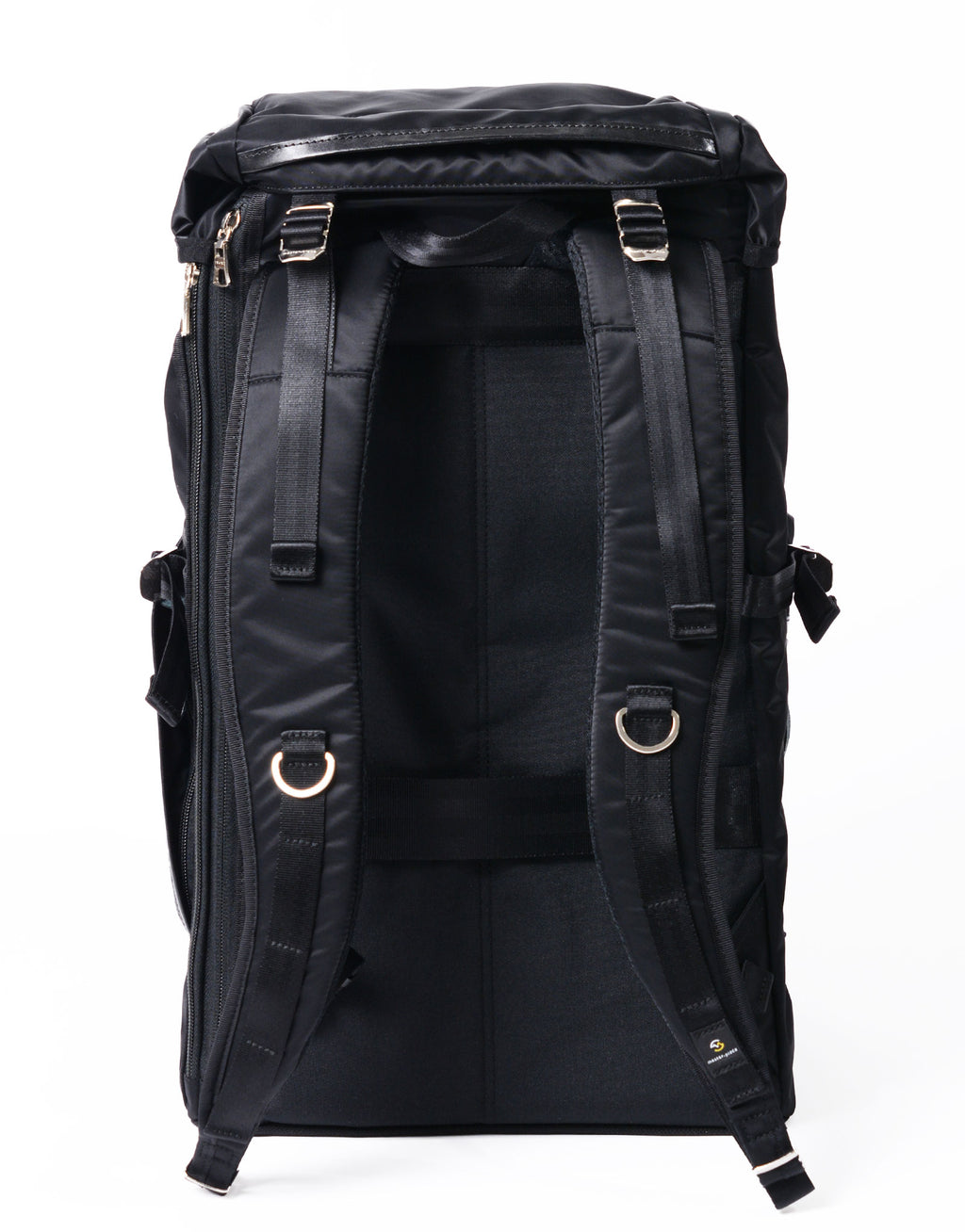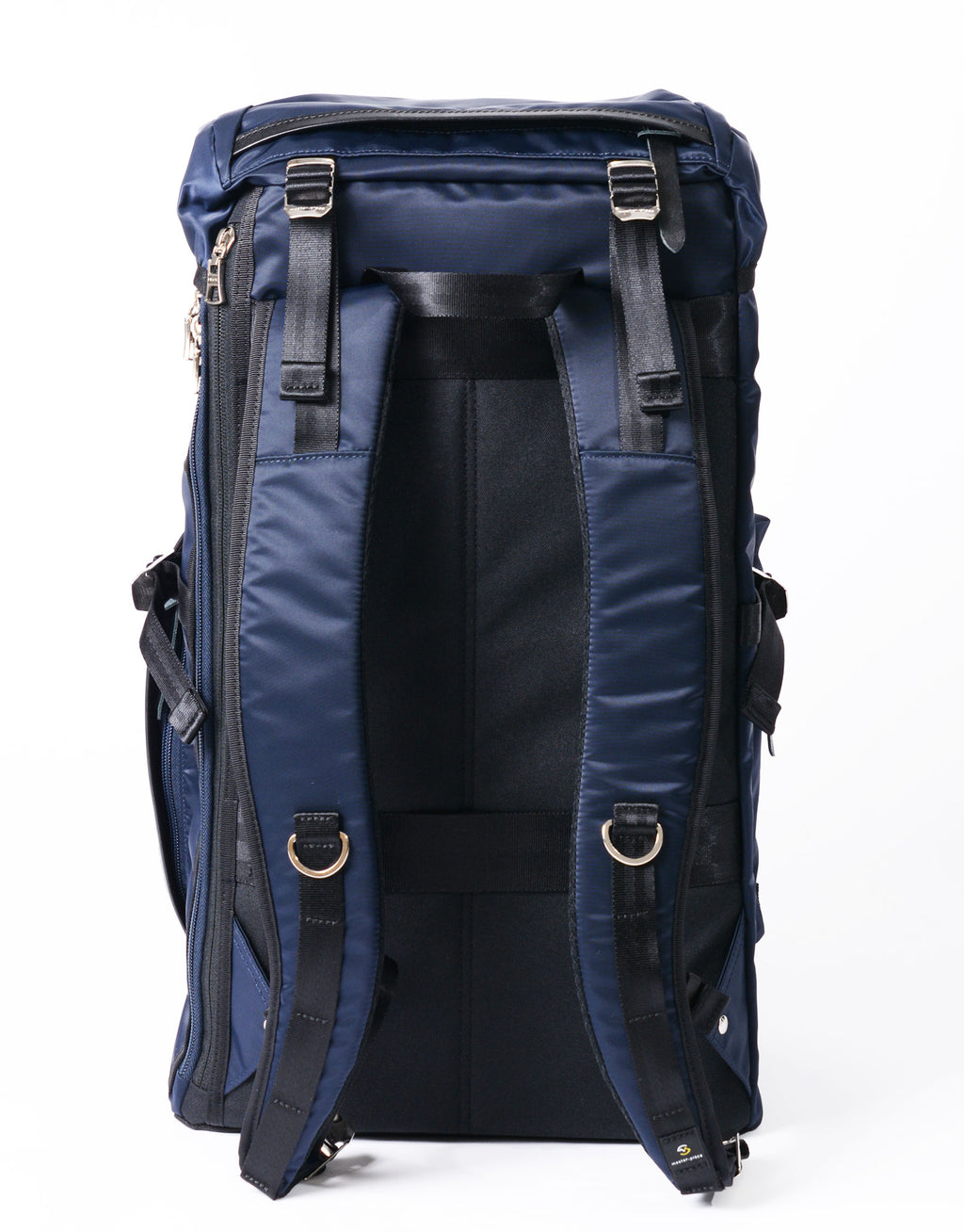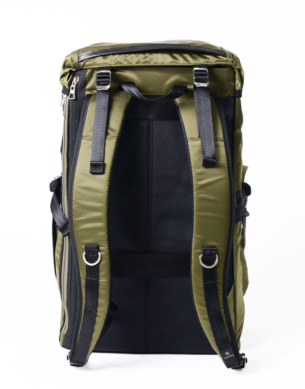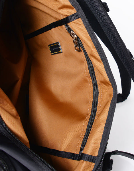 本体素材には、タテ糸に70d、ヨコ糸に210d のナイロンセミダル糸をインチ間でタテ275 本、ヨコ82 本の高密度で織り上げてハリ、コシを持たせた超高密度ナイロンツイルを使用しています。