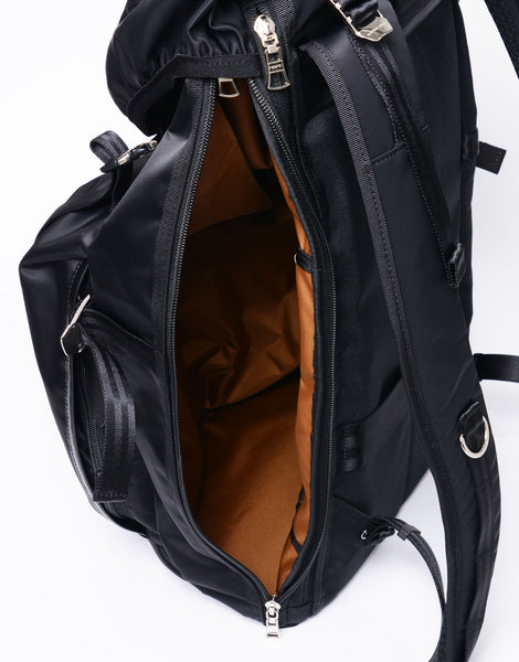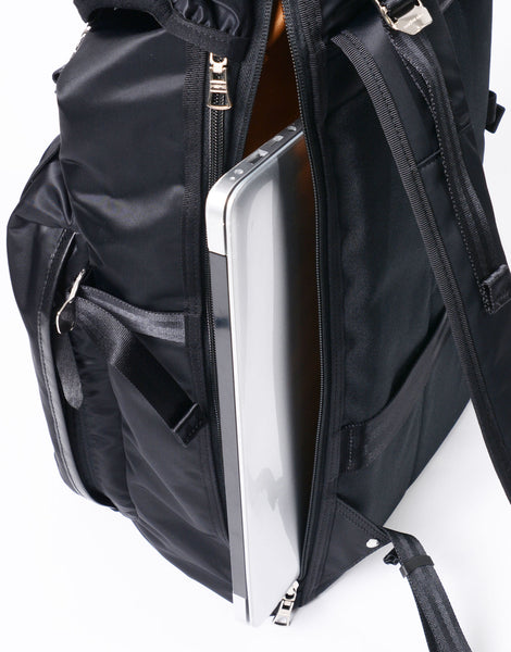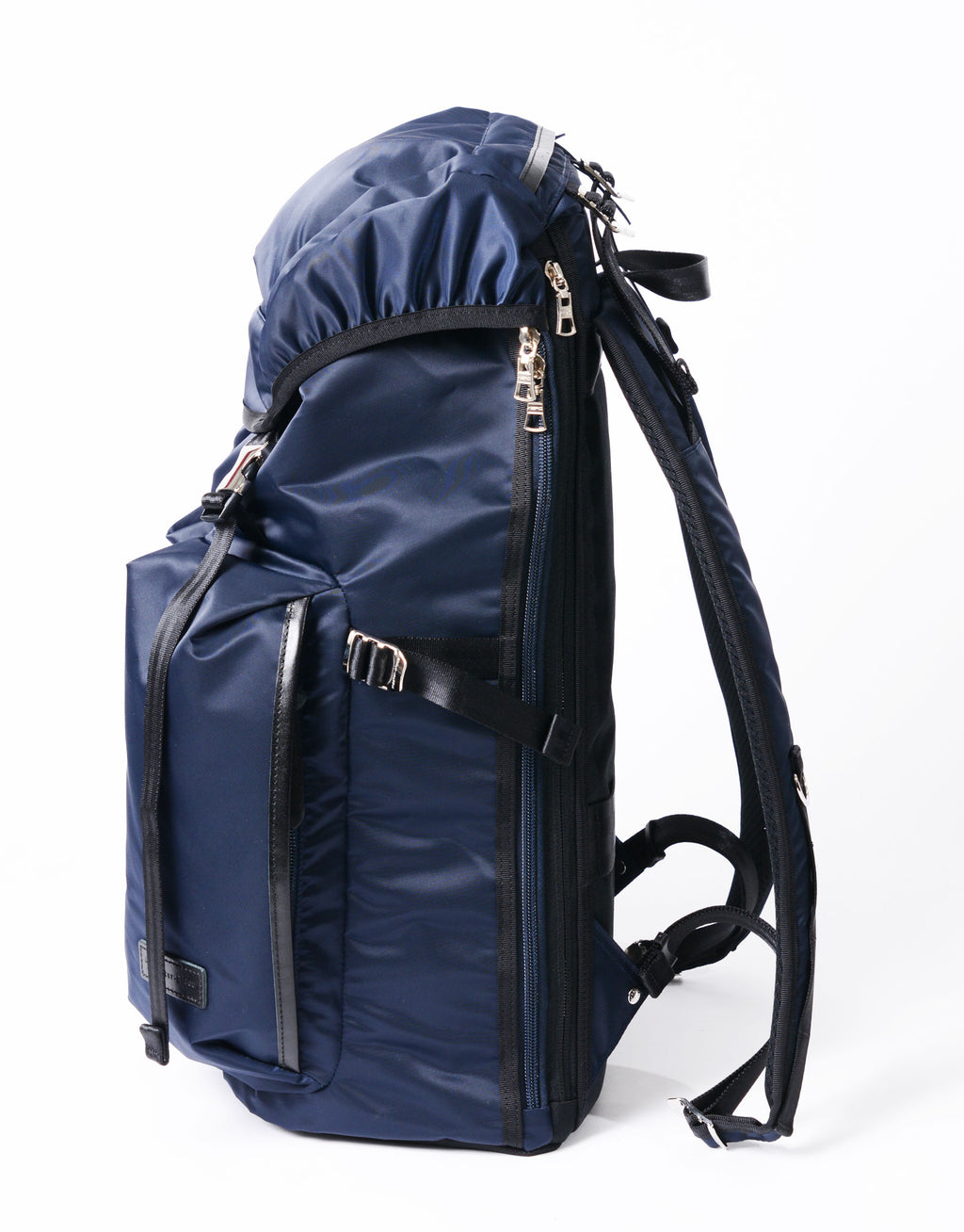フラップ仕様の端正な佇まいながら、サイドファスナーからメイン収納へスムーズにアクセス可能。