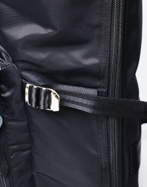 付属素材には通常のナイロンよりも耐久性を持ち、摩擦・引き裂きに強い CORDURA Ballistic® fabric1680d ナイロンを使用し、タテ840d 横ヨコ40d の撚った糸を二本ずつ引き揃えることで、より摩擦・引き裂き強度が強化され、表面には撥水加工、裏面にはPUコーティングを施しています。