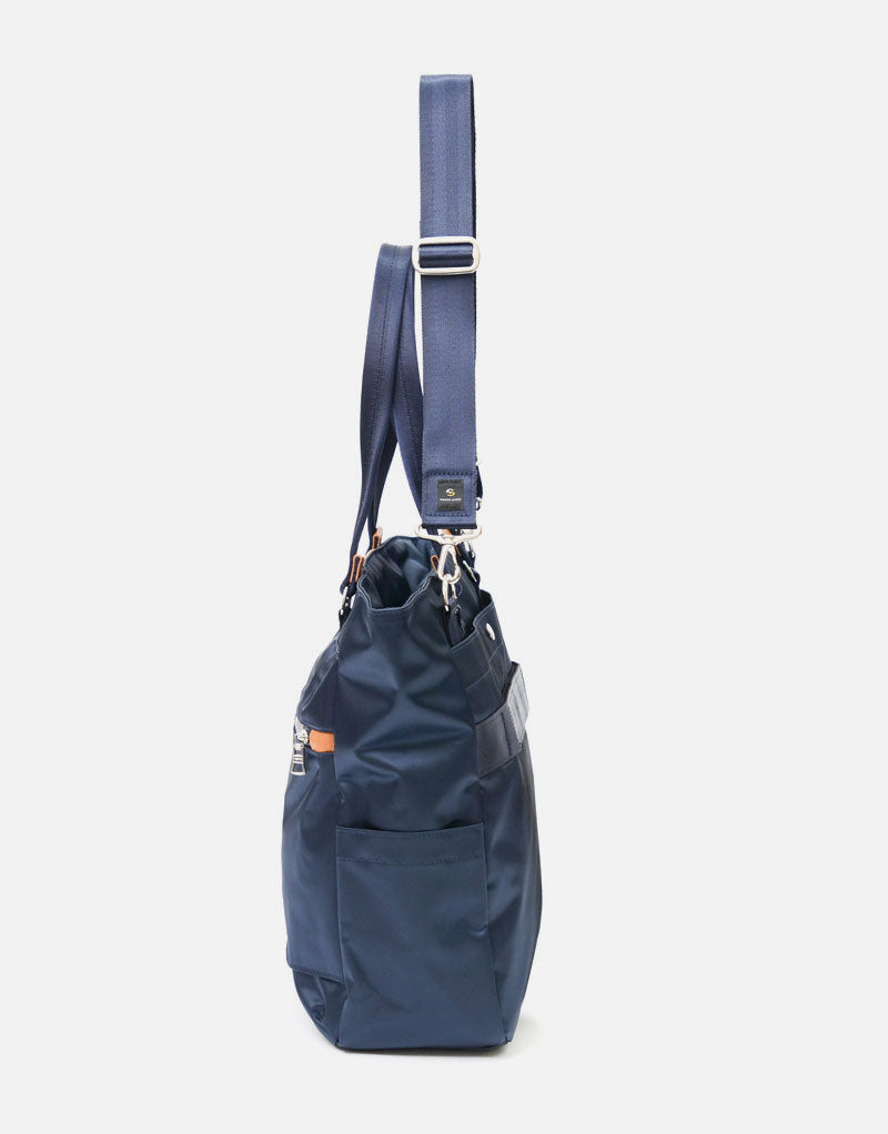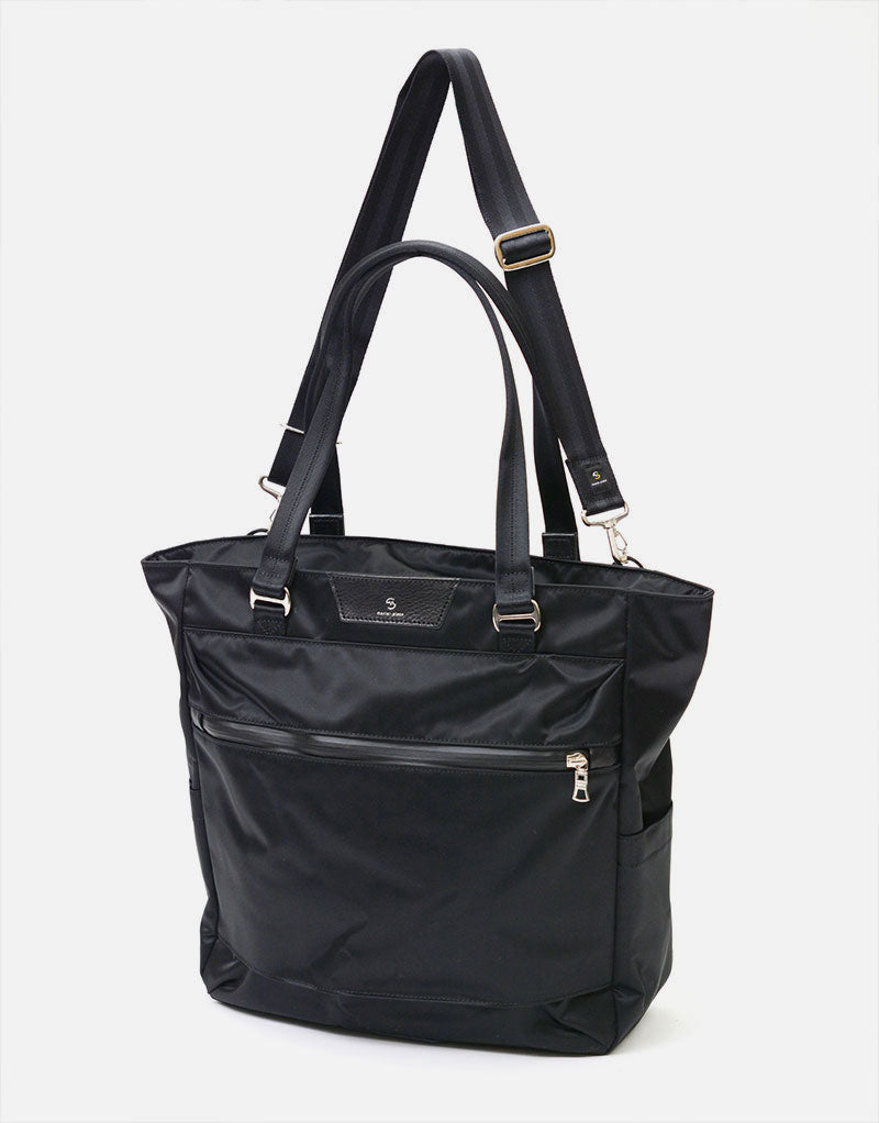 光沢感のあるナイロンツイルによる上品な表情とコンビネーションに使用されたカウレザーが印象的なmaster-piece( マスターピース)のProgress(プログレス)シリーズの2WAYトートバッグ。生地の裏面にはPVCコーティングが施され、防水性とハリ感を実現しています。ビジネスカジュアルとして、オンオフ兼用で使用することが可能です。