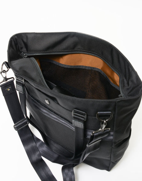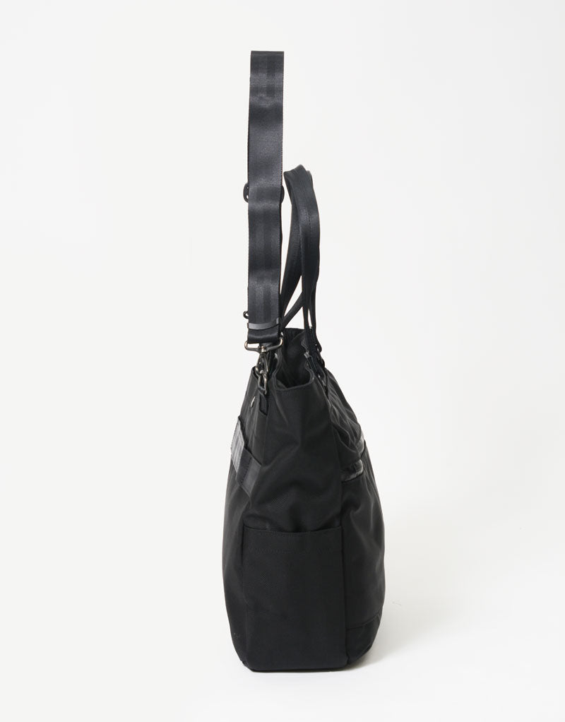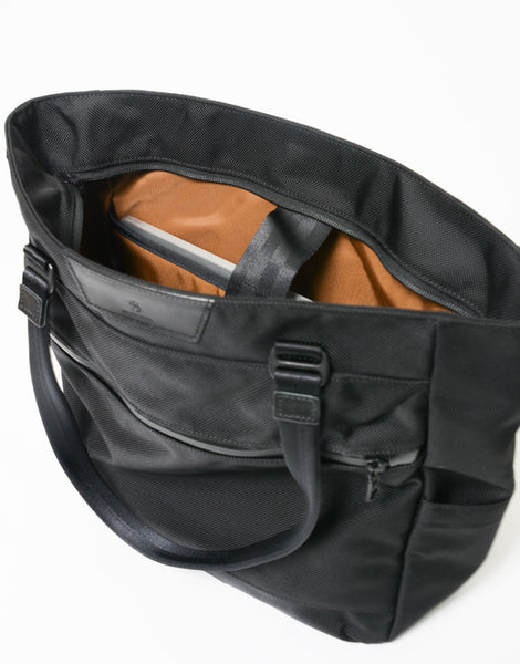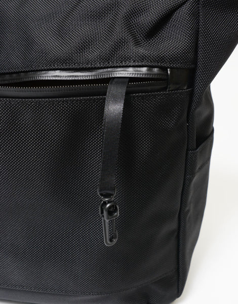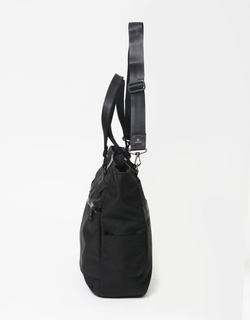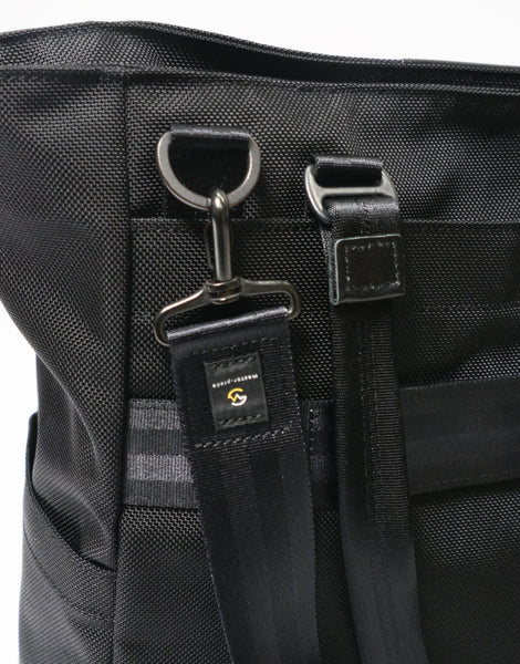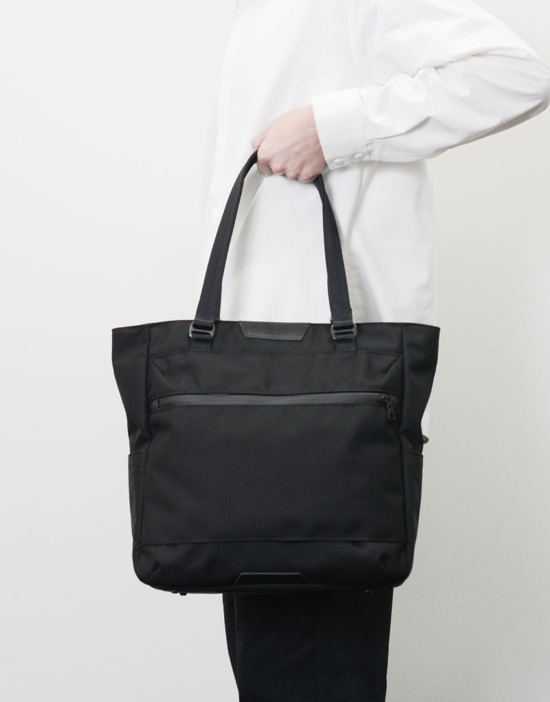 本体素材には通常のナイロンよりも耐久性を持ち、摩擦・引き裂きに強い CORDURA Ballistic® fabric1680d ナイロンを使用しています。タテ 840d ヨコ 840d の撚った糸を二本ずつ引き揃 えることで、より摩擦・引き裂き強度が強化され、表面には撥水加工、裏面には PU コーティングを施しています。付属素材のレザーは防水鞣しを施したレザーを使用。 メインファスナーはテープに撥水効果のある YKK 撥水ファスナー、フロント部分には止水性を持たせる処理を施した YKK アクアガードファスナーを使用しています。ラップトップやタブ レット等の収納に便利なポケットを装備し、ビジネスやカジュアルシーンに対応するシンプルなデザイン、様々なシチュエーションで使用できるシリーズです。