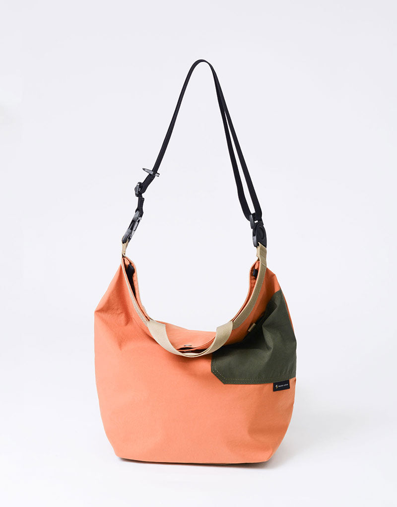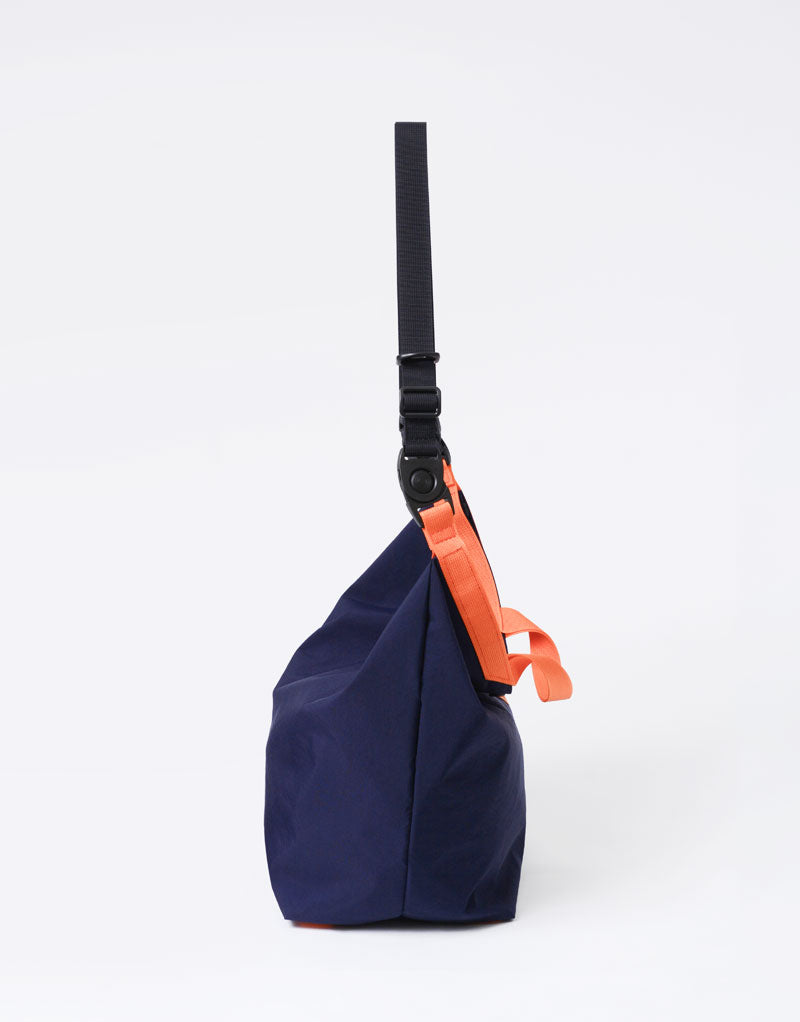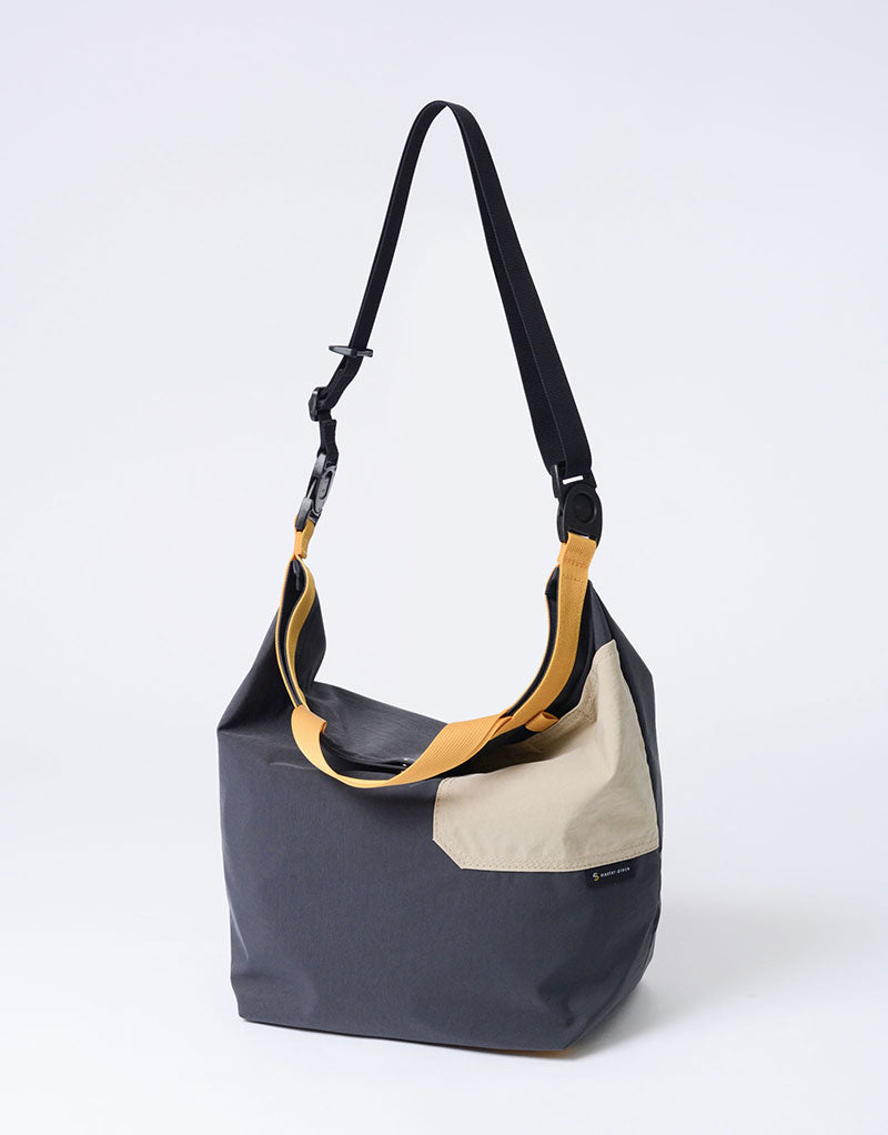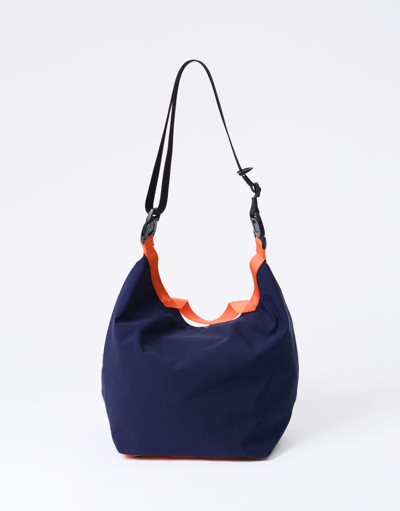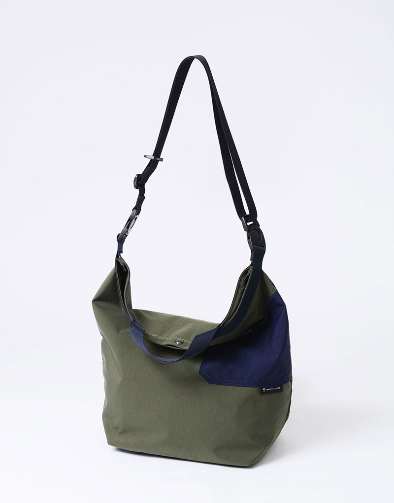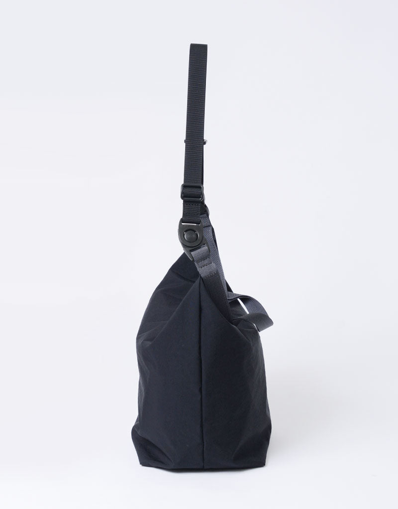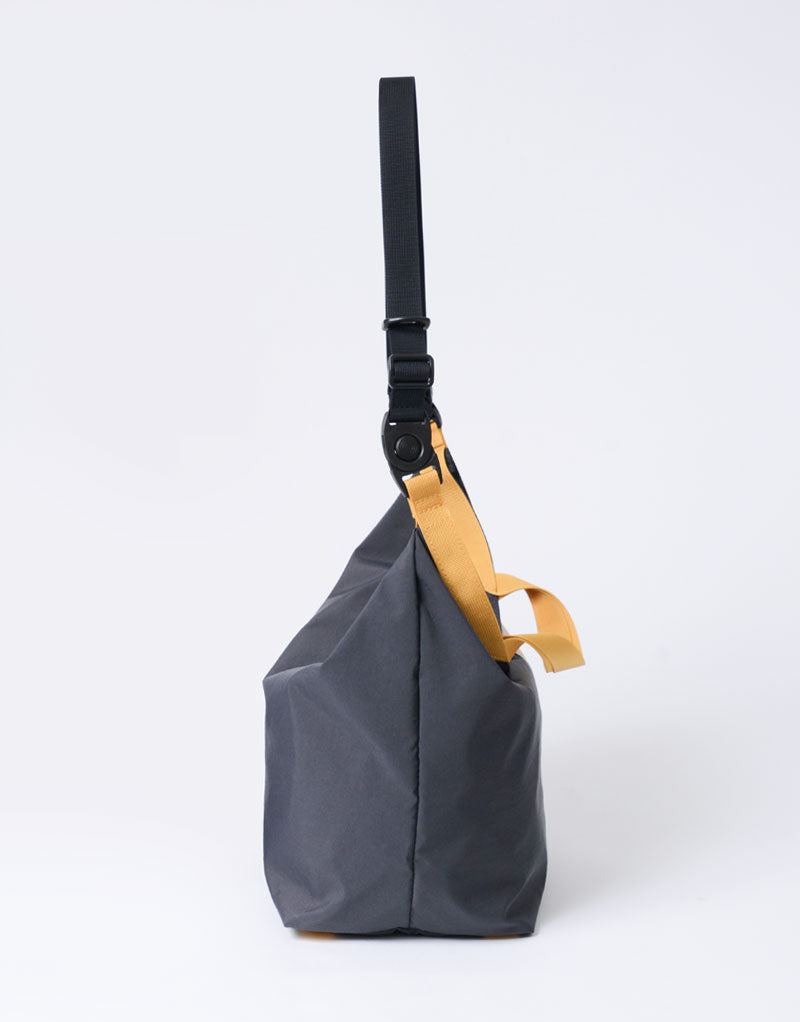 シリーズ最大の特徴である、底に設けたホックを留めることでマチを無くしたり、違うシルエットに変形することができます。またショルダーベルトを外し、本体のバックルを止めることで違うニュアンスで使用することもできます。