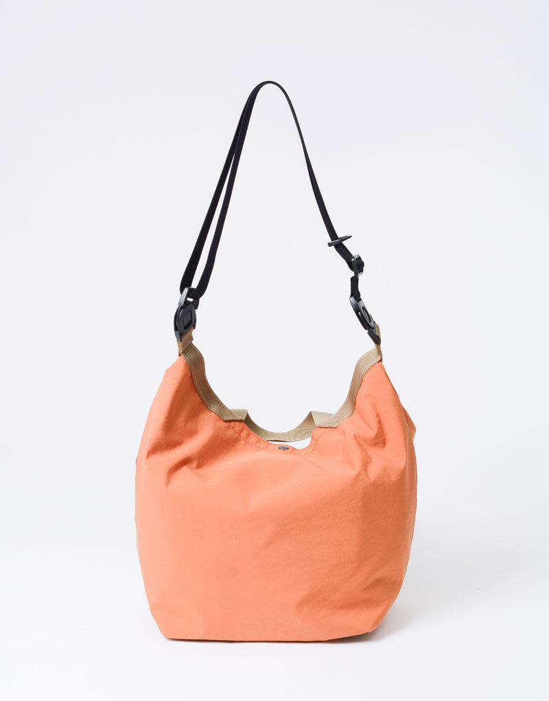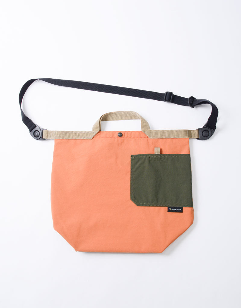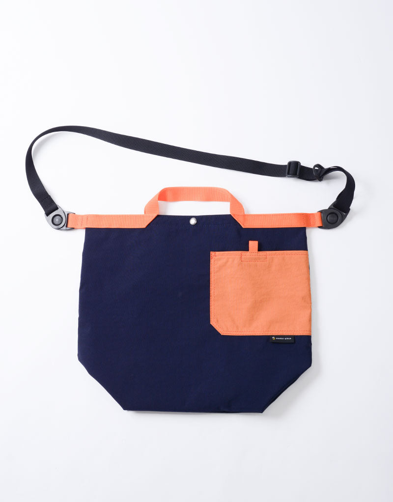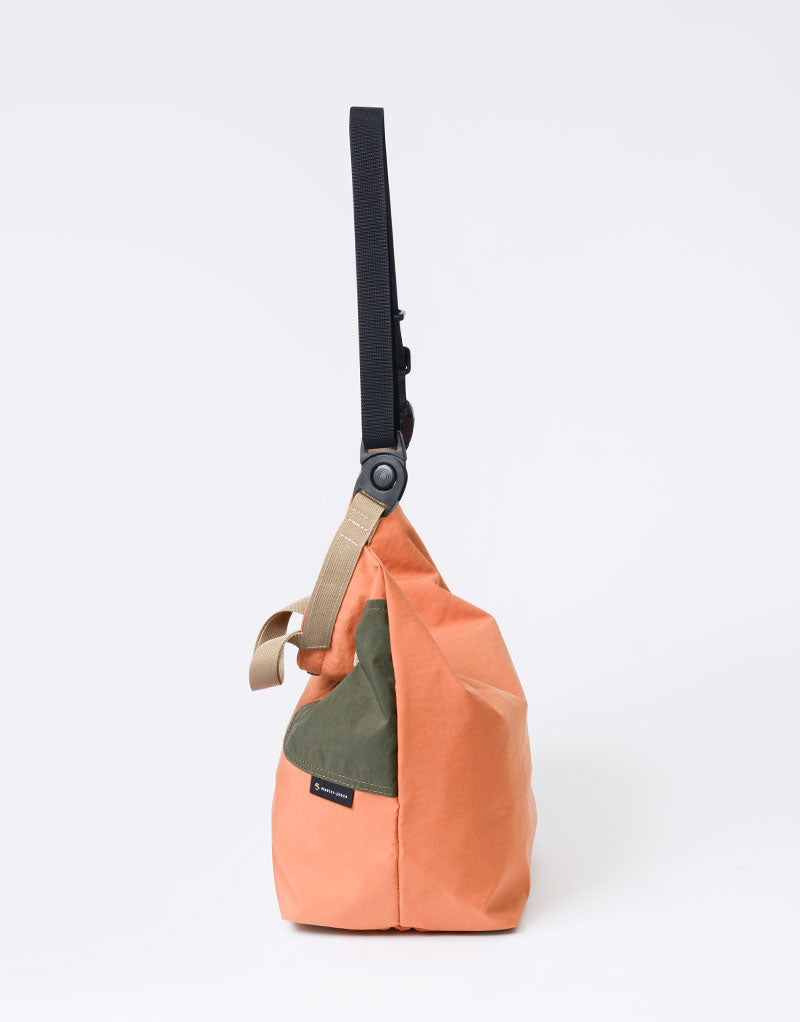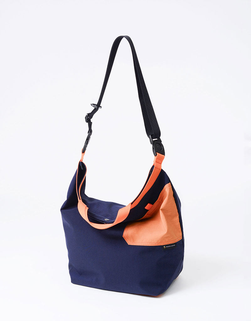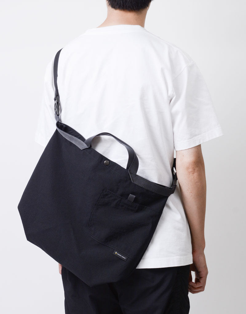 シリーズ最大の特徴である、底に設けたホックを留めることでマチを無くしたり、違うシルエットに変形することができます。またショルダーベルトを外し、本体のバックルを止めることで違うニュアンスで使用することもできます。