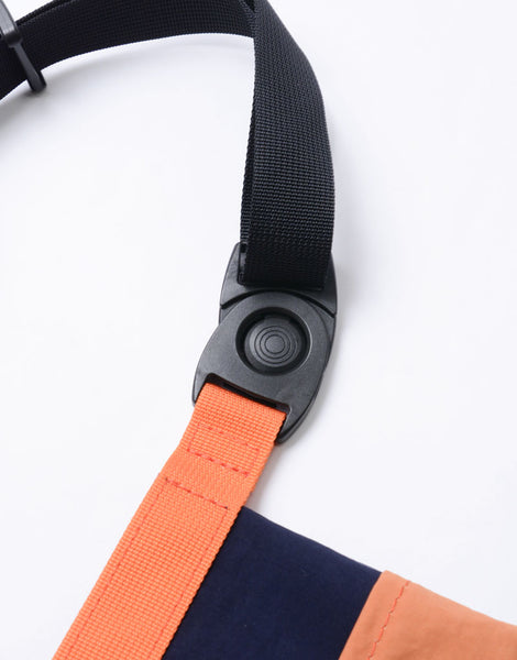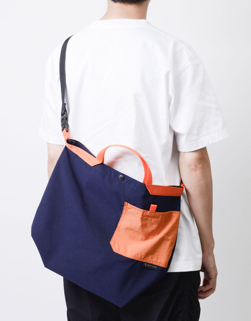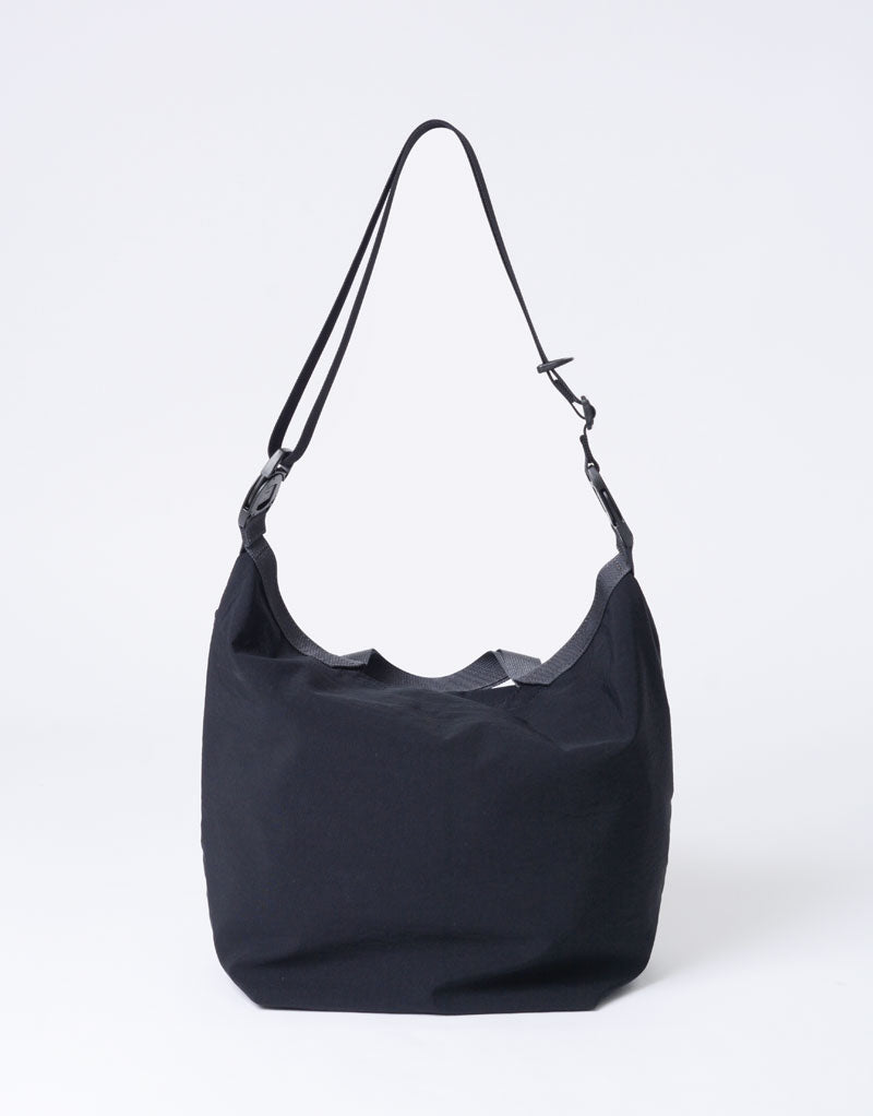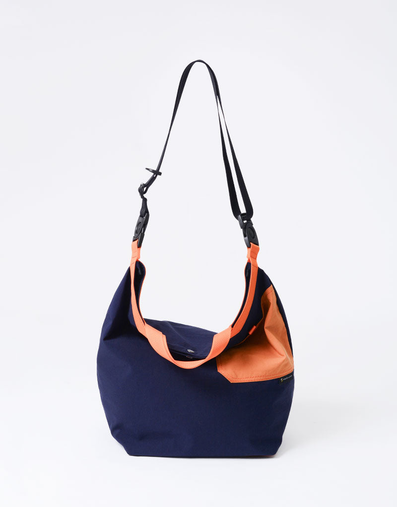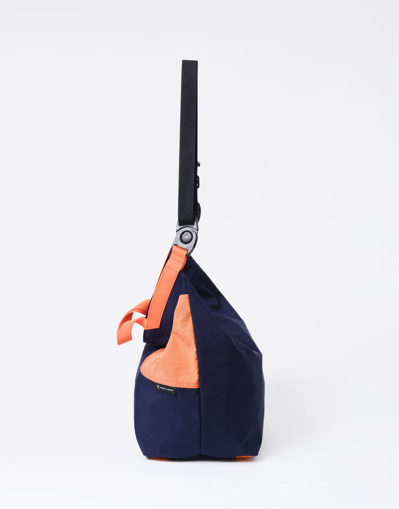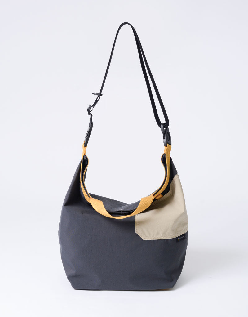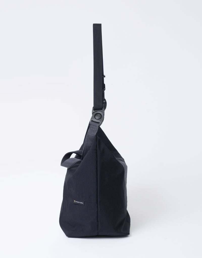 シリーズ最大の特徴である、底に設けたホックを留めることでマチを無くしたり、違うシルエットに変形することができます。またショルダーベルトを外し、本体のバックルを止めることで違うニュアンスで使用することもできます。