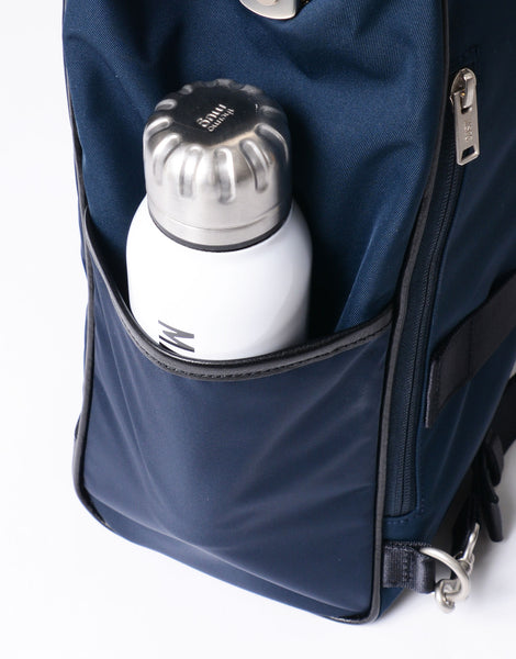 メイン収納の両サイドにペットボトルを立てて収納できるドリンクホルダーを装備。