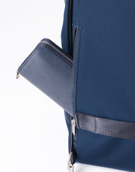 フロントポケットにファスナー仕様に変更することで、プライバシーやセキュリティ性を高めています。ペンやメモ等の小物を収納するのに便利です。