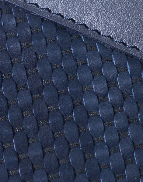 本体素材には、タテ糸に箔糸と絹糸、ヨコ糸にはオーストラリア産のカンガルーレザーを幅2mm にした革紐を使用し、コンビネーション鞣しを施すことで織物として使用できるよう強度を持たせております。京都発祥で1000 年以上の歴史があるといわれる伝統産業の「西陣織」の職人が手掛けたレザーメッシュで、着物を織る織機で伝統技術を受け継ぐ職人が一本一本丁寧に織り上げています。