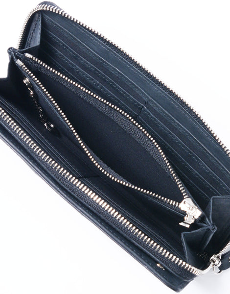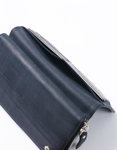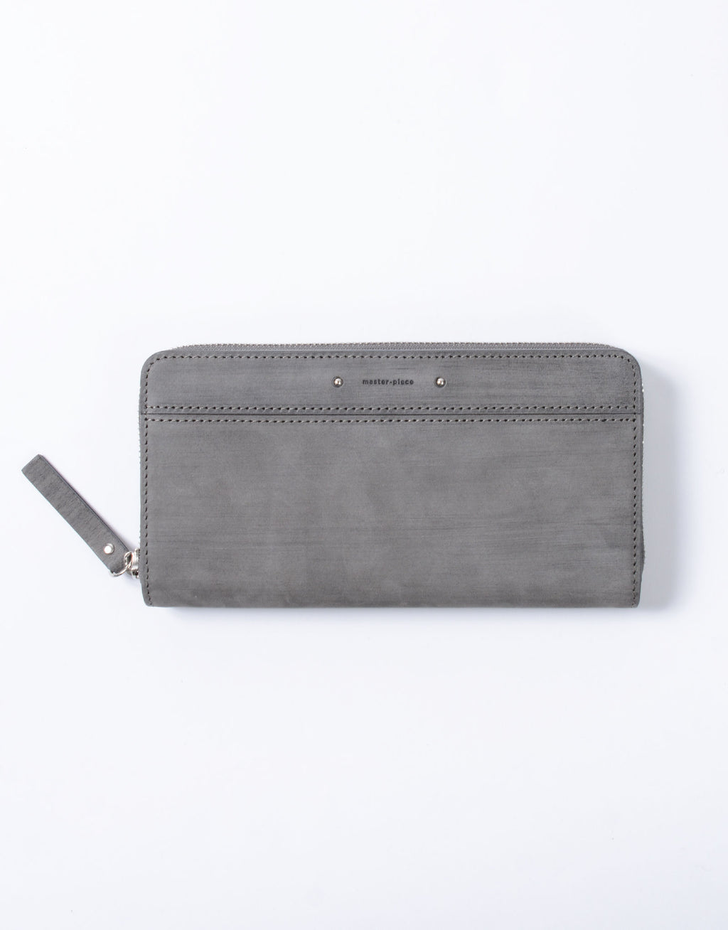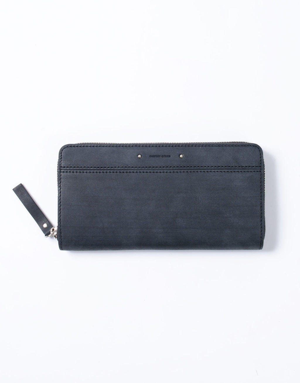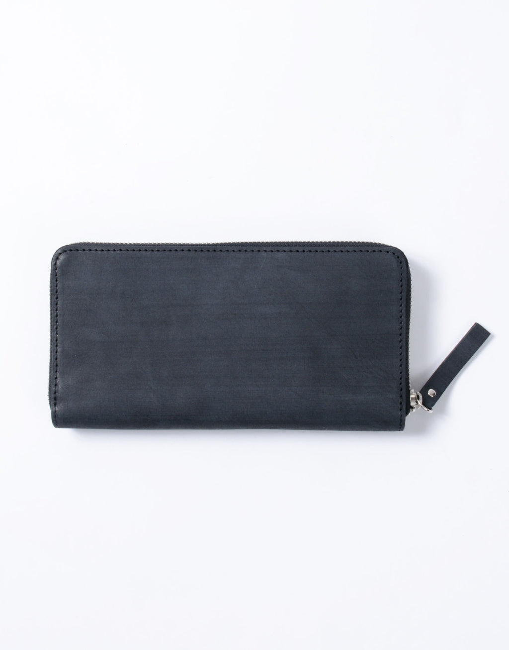 職人の手で1 枚1 枚カナブラシを用いてブラッシングをかけられた木目調の表情の革と、ネーム部分のカシメが特徴的なカジュアルウォレットシリーズ。