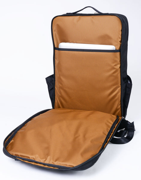 内装生地は420dナイロンオックスで視認性の高いオリジナルキャメルカラーを採用。メインファスナー