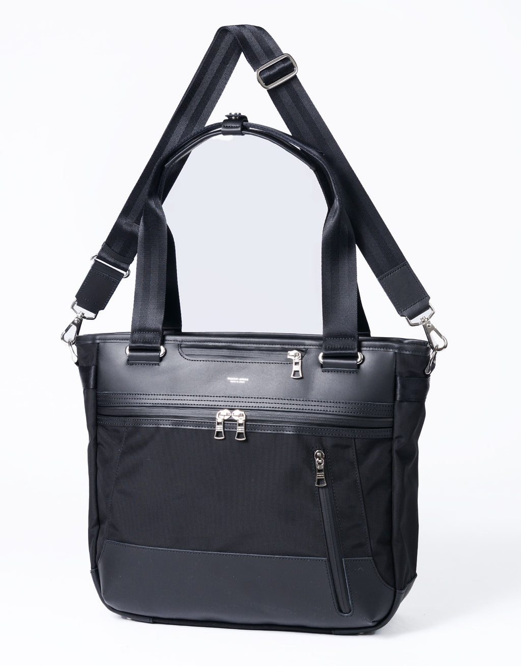 フロントに、スマートフォンや財布などの収納に便利なポケットが配置されています。
