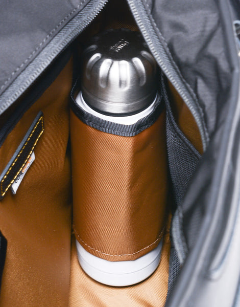 メイン収納内に水筒を立てて収納できるホルダーが付いています。