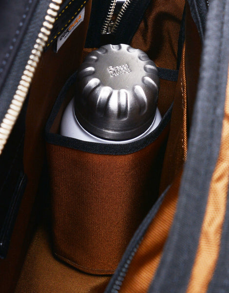 本体の革は北米産の良質ステアレザーを使用し染色時に「3M」社製の防水剤をタイコに入れて、革の繊維の中まで浸透させています。革の裏面、側面はもちろん、傷がついたところからも持続的に 水・油の浸入を防ぎます。