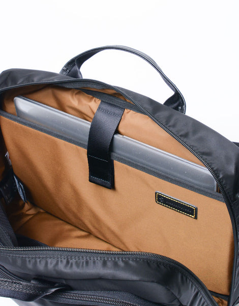master-pieceオリジナルの特殊撥水加工 m-coat™を施した高機能ナイロンツイルを本体生地に採用。