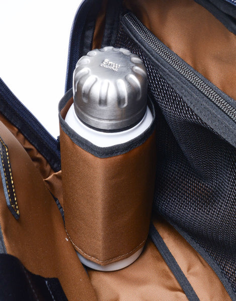 メイン収納内に水筒やペットボトルを立てて収納できるホルダーが備えられています。