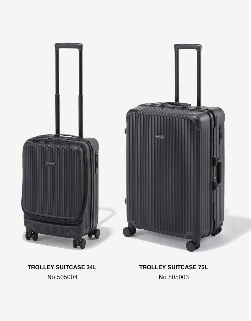 アメリカ運輸保安局認可の「TSA ロック (※)」を標準装備。耐久性が高く、小回りのきく日乃本錠前社製の大型の4 輪ダブルウィールで機動性と静音性を確保。また電車内や傾斜のある場所で便利なキャスターストッパーのオン・オフ機能を装備。キャリーバーは3段階で長さの調節ができハンドルはグリップ感の高いパーツを使用しています。内装はクロスベルトと取り外しが可能な仕切りパネルを装備。旅先ではウォールポケットとしてお使いいただけます。