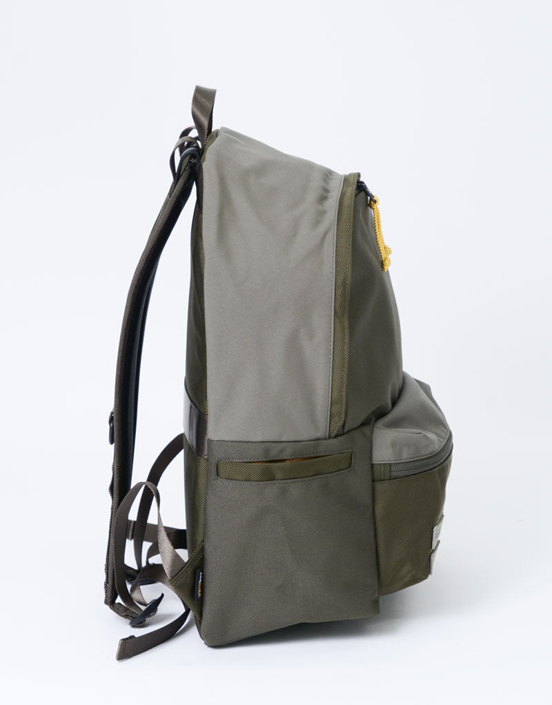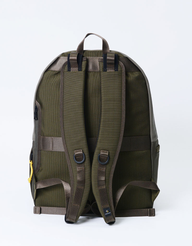 OLIVE、NAVYの本体素材には、タテ糸に915d CORDURA®ポリエステル糸、ヨコ糸には1200d CORDURA®リサイクルポリエステル糸を使用したオックス生地に、テフロン加工を施すことにより撥水性、防汚性を高めています。