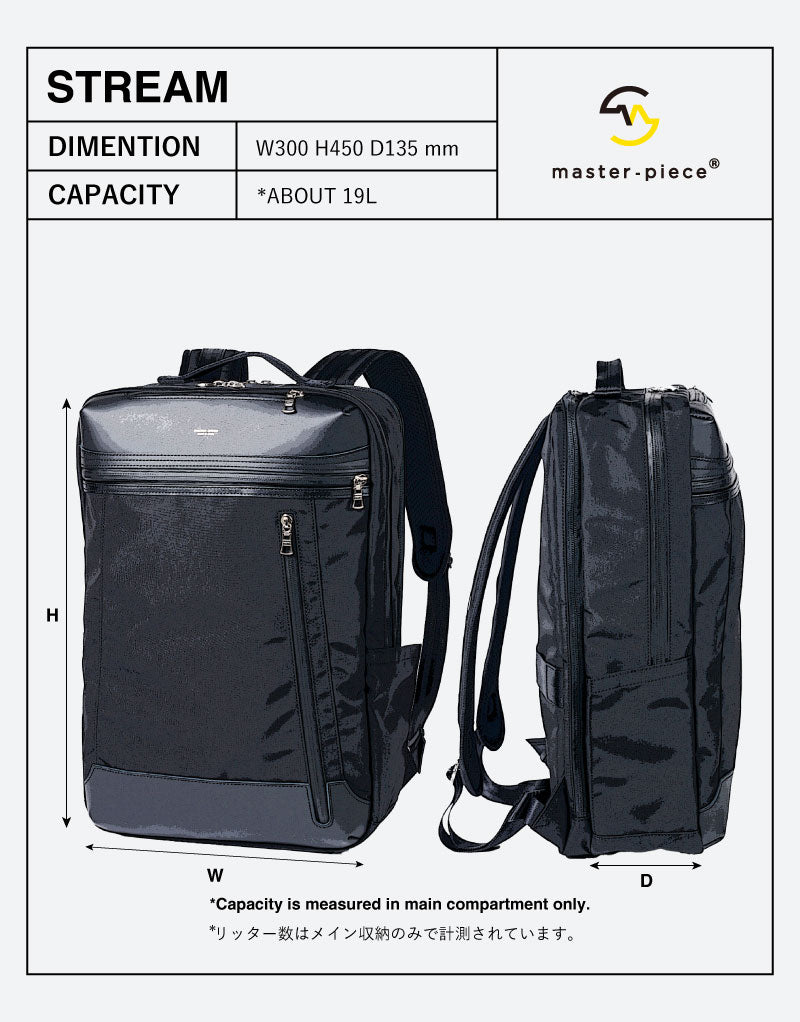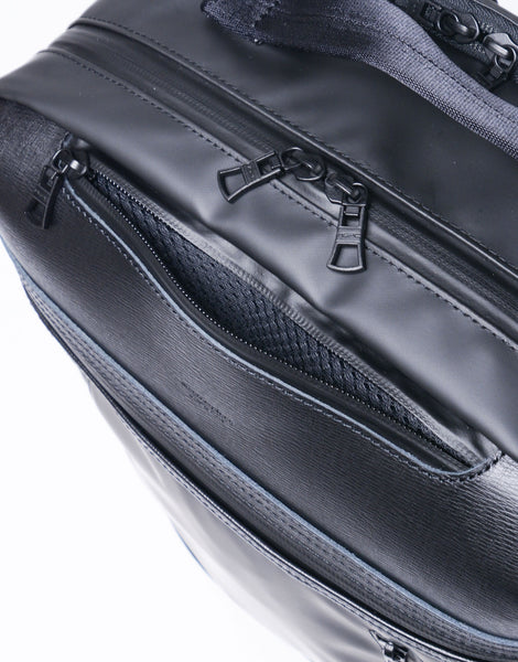 フロント上部のファスナーからアクセスできる収納は、折りたたみ傘などかさばりやすい小物の収納に適しています。