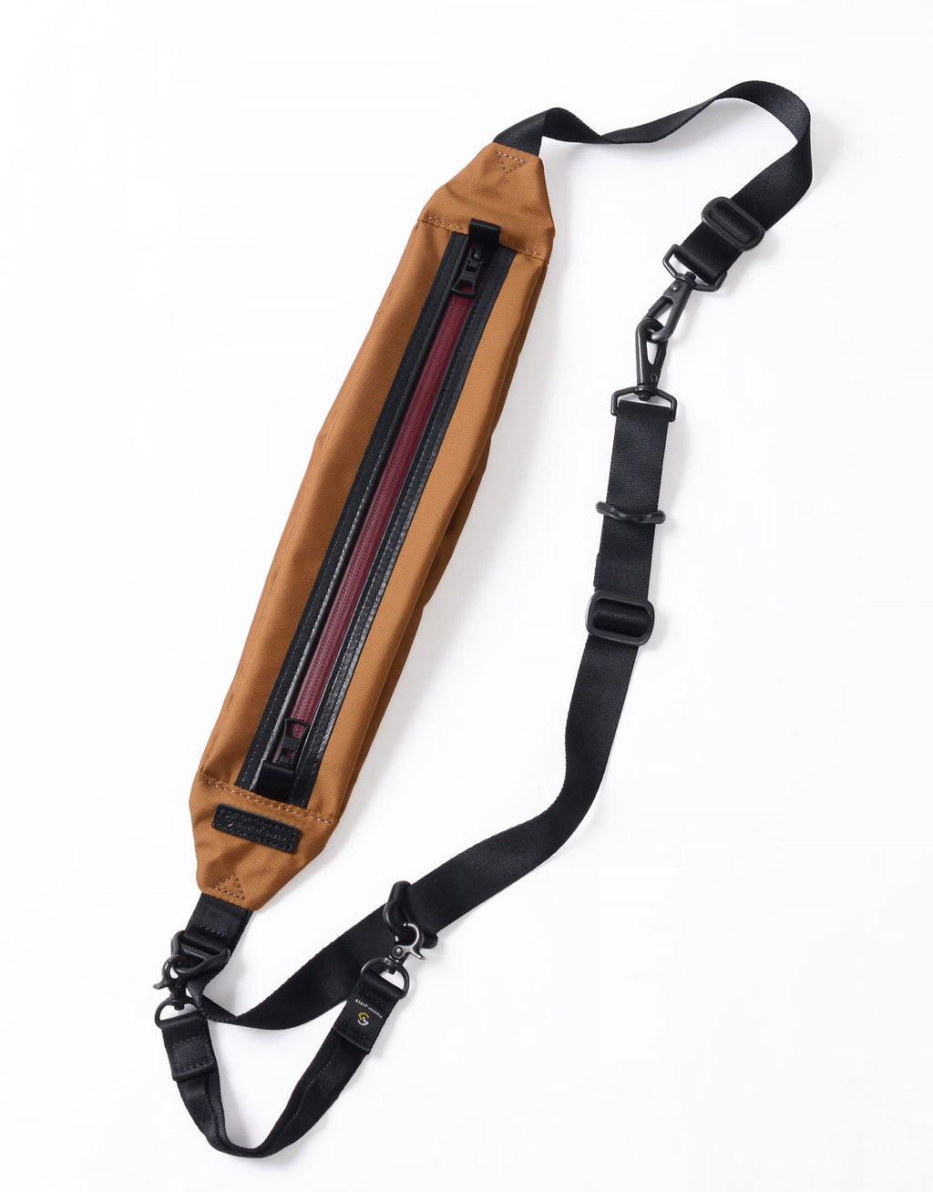 配件皮革使用经过防水鞣制处理的皮革。 附带的织带呈环状设计,可装配登山扣或钥匙环等配件。