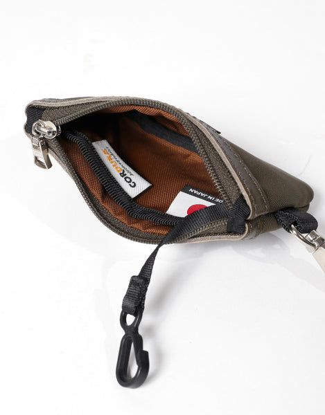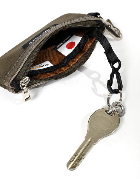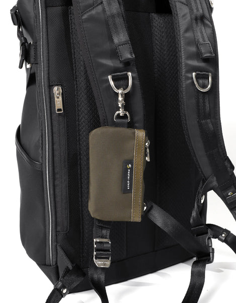 这是一个带有茄子环的小袋,可以挂在包或皮带环上。不仅可以用作智能钥匙包,还可以用来存放卡片、无线耳机等。