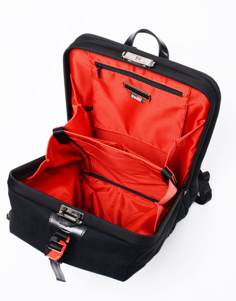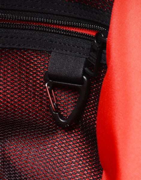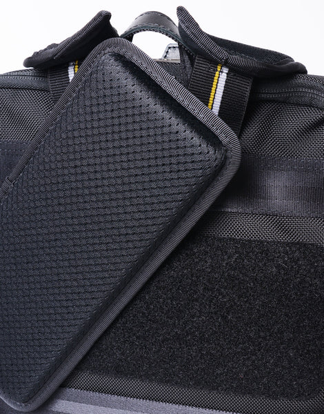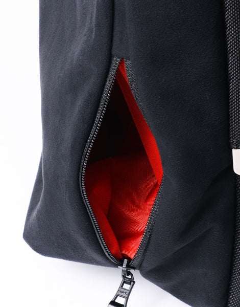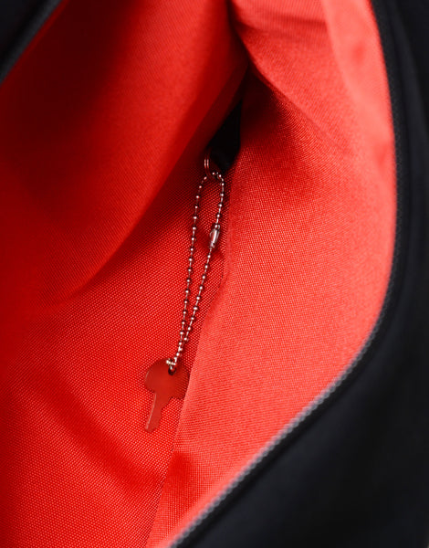 コラボレーションの証であるTOYOTA GR x master-pieceのピスネーム。内装の生地にはGRを象徴するレッドカラーの420d ナイロンを使用し、master-pieceの定番とは全く異なった印象の雰囲気に仕上げました。