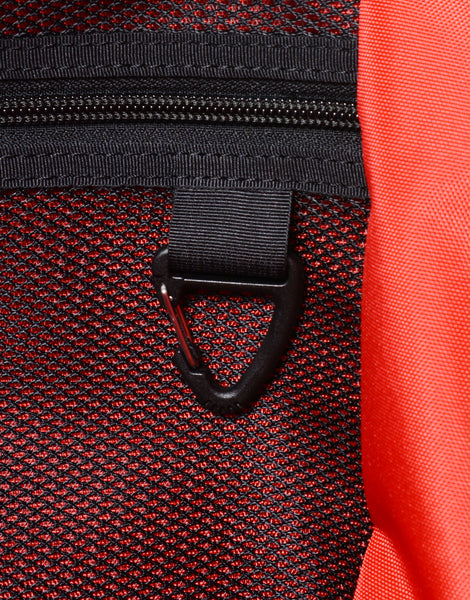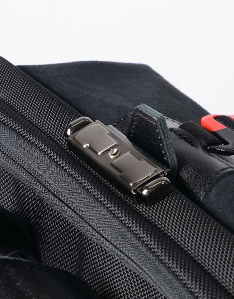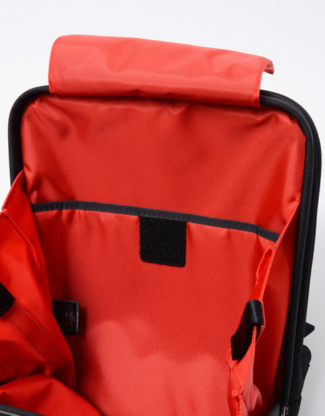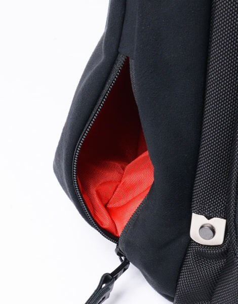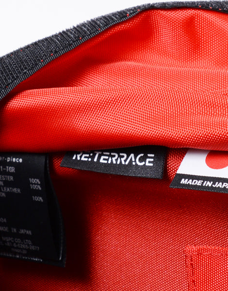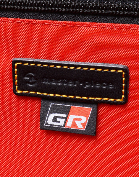 コラボレーションの証であるTOYOTA GR x master-pieceのピスネーム。内装の生地にはGRを象徴するレッドカラーの420d ナイロンを使用し、master-pieceの定番とは全く異なった印象の雰囲気に仕上げました。