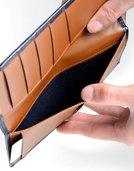 こちらはカードが多数収納できる、小銭入れを省いたスリムなロングウォレットになっています。