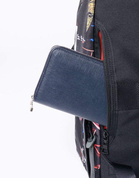 プリントの柄は使用箇所により、並び方が異なりますので予めご了承ください。本体素材は濡れたまま長時間放置いたしますと、裏面のフィルムが剥離したり、変色や劣化の原因になりますので必ず乾かしてから保管して下さい。撥水加工は表面の加工になりますので、使用していきますと摩擦などで効果が薄れていきます。また、生地に付着するホコリやその他汚れなどによっても撥水力は失われていきます。付属レザーはレザー本来の質感を活かすため染料のみで仕上げを行っておりますので、若干の色ブレがございます。また素上げの特性上、変退色は避けることができませんのでご了承ください。革個体独特のシワや傷が入る場合がございます。摩擦等による、色移行、変退色が生じる可能性がございますのでご注意ください。 天然皮革の為、雨や水に濡れた場合はシミなどになる可能性がありますのでご注意ください。
