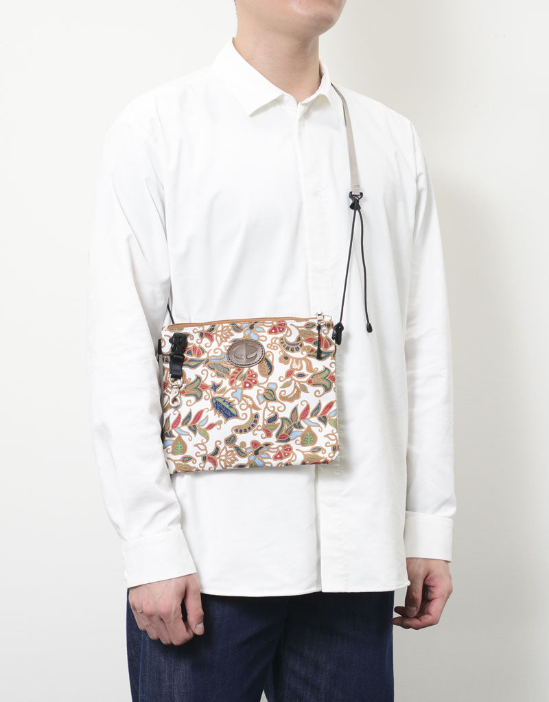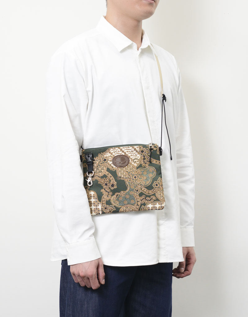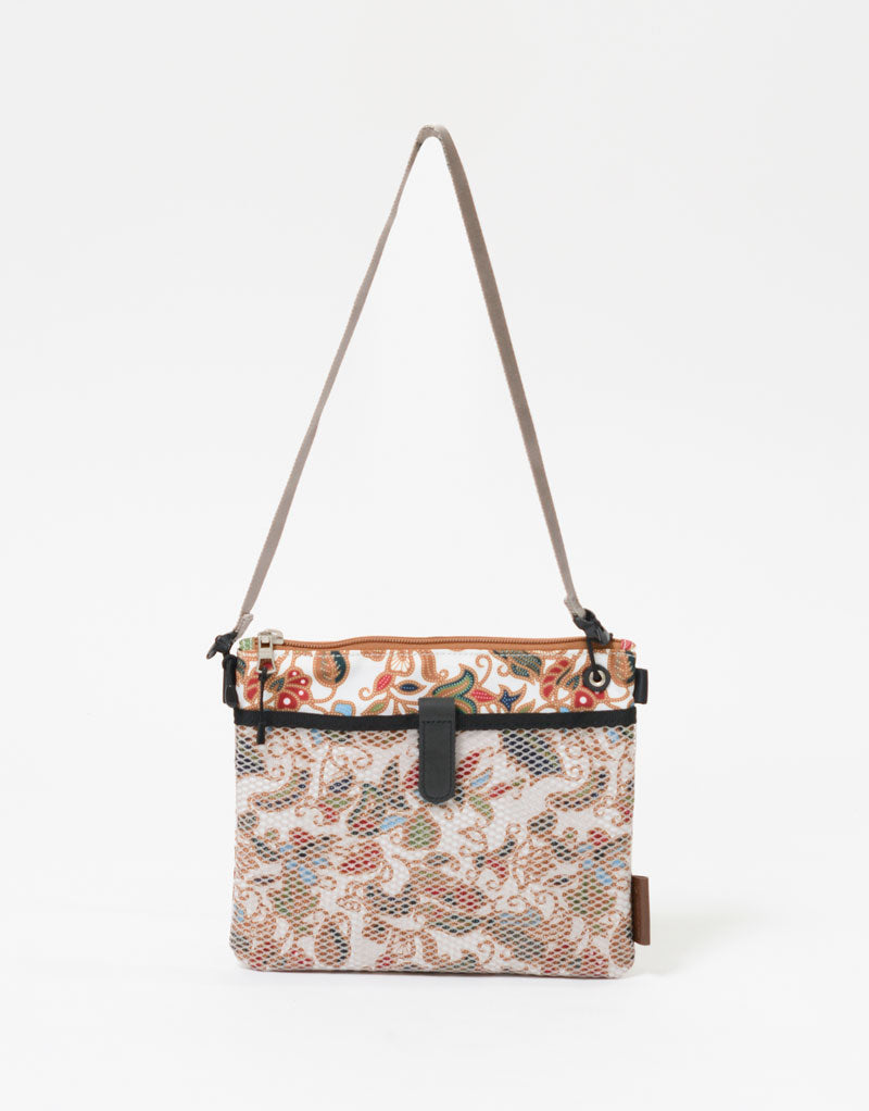 实体皮革素材的表面拉锁附着网状口袋被施给。